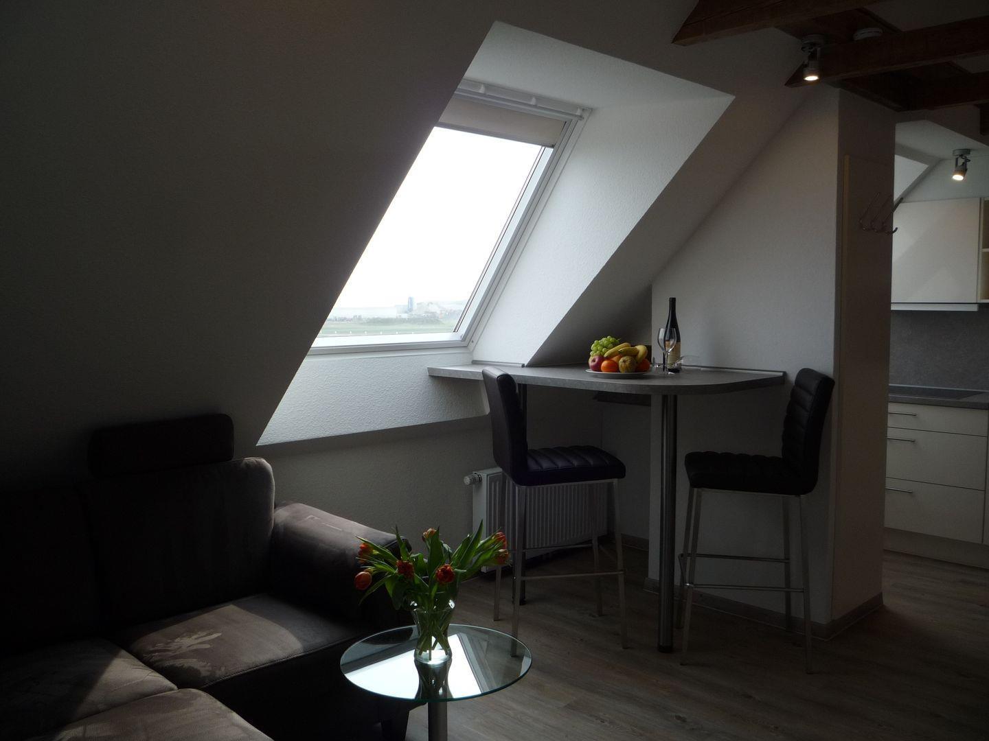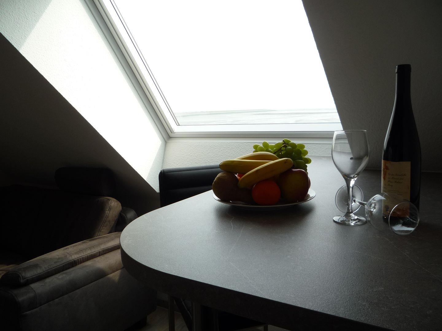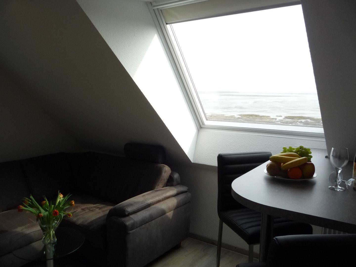 Am kleinen Esstisch direkt am Fenster beobachten Sie das Wetter auf Norderney.