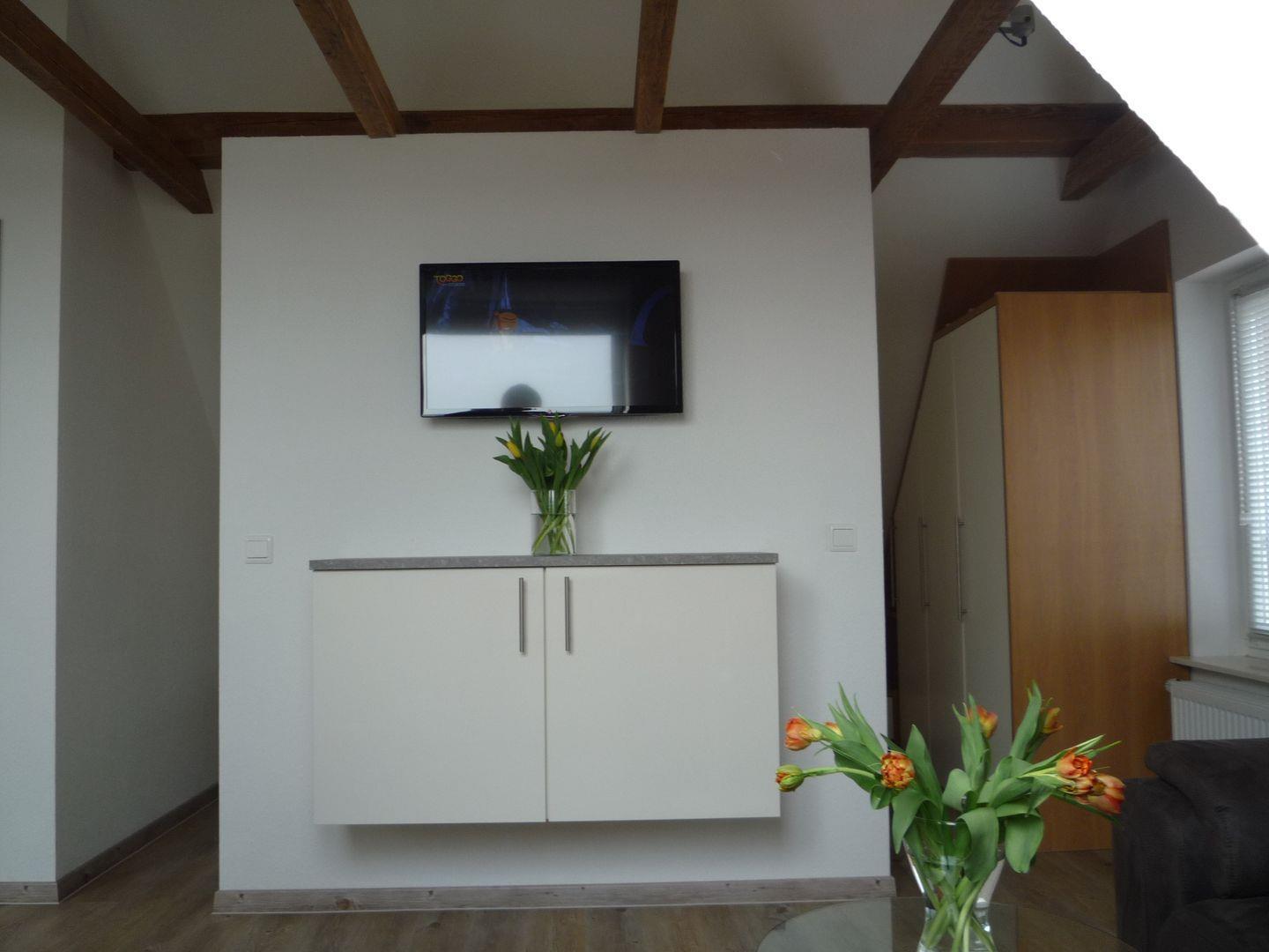 Letzterer ist mit einem Doppelbett sowie einem gemütlichen Fernsehsessel mit Tisch ausgestattet. Außerdem