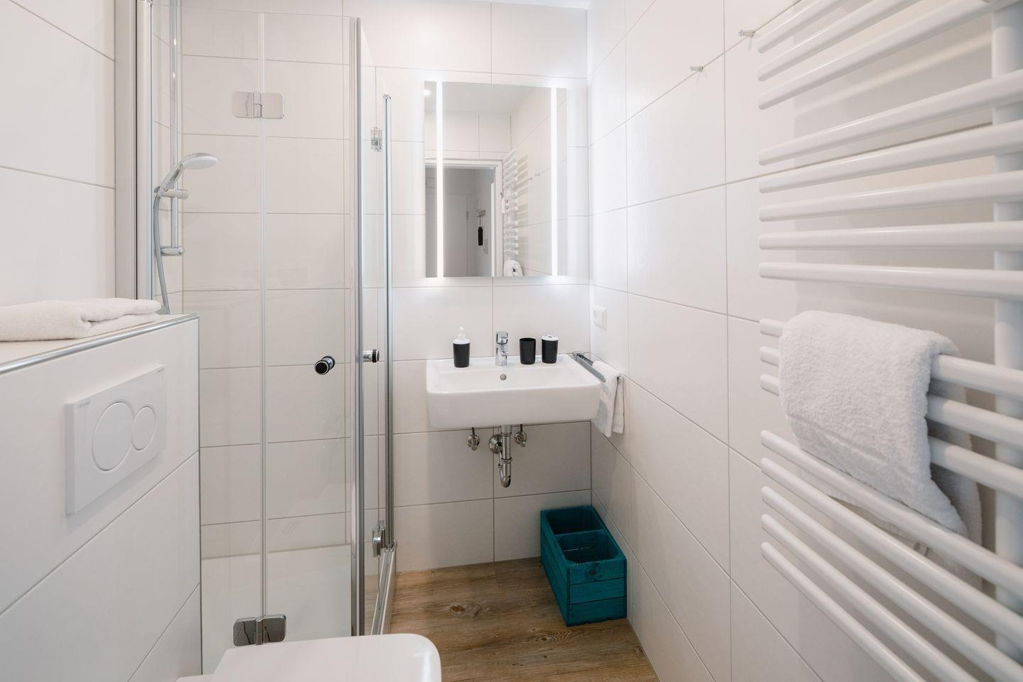 Das Badezimmer ist modern und funktional mit Dusche und WC ausgestattet und für den täglichen Gebrauch bestens geeignet.