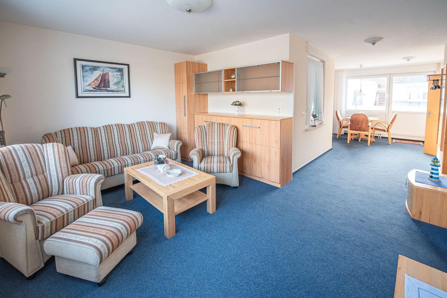 Diese helle, moderne aber gemütliche 2-Zimmer-Wohnung im 1. OG liegt stadt- und strandnah. Sie bietet über 56 qm Platz für bis zu 3 Personen.