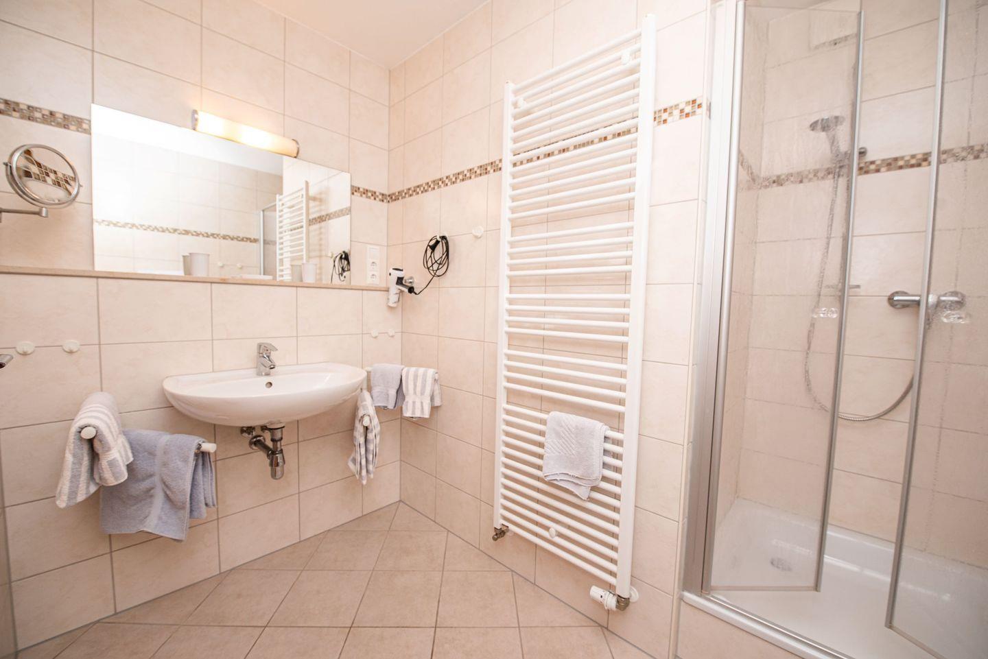Das innen liegende Badezimmer mit Dusche, WC und Fön komplettieren diese Ferienwohnung.