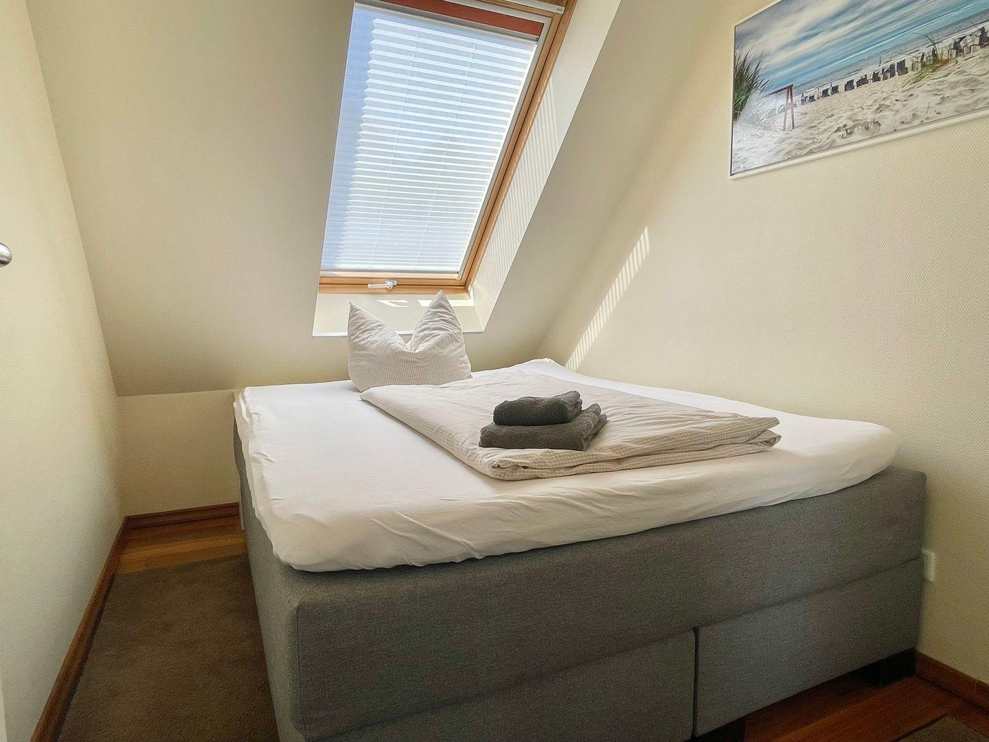 Ein weiteres kleines Schlafzimmer ist mit einem größeren Einzelbett, ebenfalls einem Flachbild-TV sowie einem Möbelsafe ausgestattet. Beide Schlafräume können durch Innenrollos bequem verdunkelt werden.
