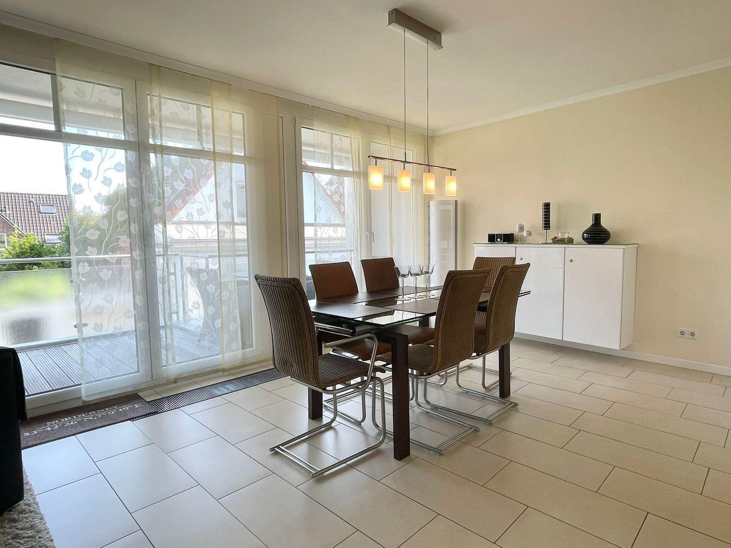 Diese helle und moderne Ferienwohnung im 1. Obergeschoss bietet auf ca. 70 m² viel Platz und Komfort für 3 Personen. Ein Highlight ist der große, teilweise überdachte Südbalkon mit Markise, auf dem Sie die Sonne und gemütliche Stunden im Freien genießen können.