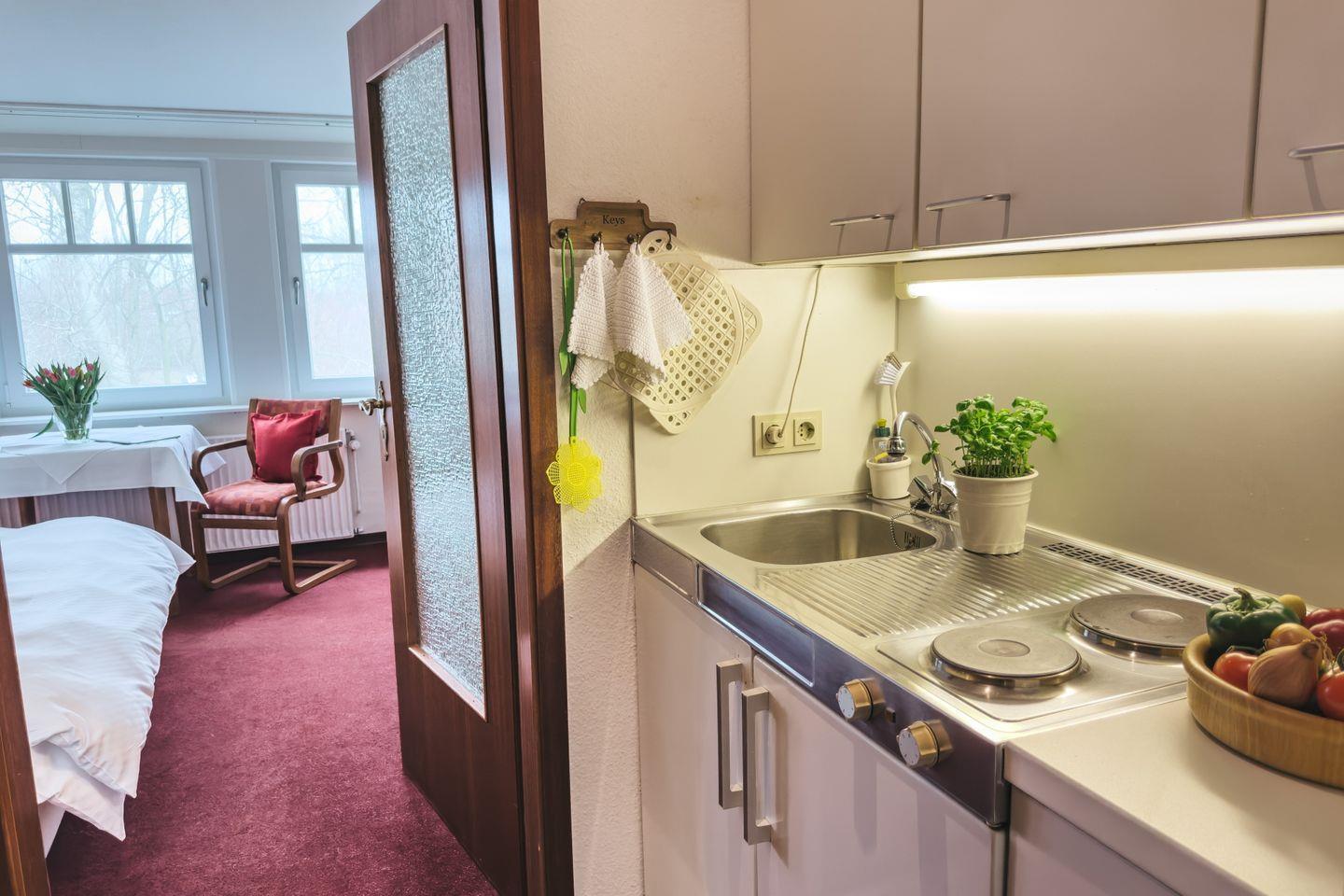 Das Studio ist mit einer Kochnische ausgestattet, die alles bietet, was Sie für Ihr leibliches Wohl benötigen: ein 2-Platten-Herd, eine Kaffeemaschine, ein Kühlschrank und weitere Küchengeräte ermöglichen es Ihnen, sich nach einem langen Tag am Strand zu verwöhnen. Der gemütliche Essbereich lädt zu gemeinsamen Mahlzeiten ein und sorgt für eine heimelige Atmosphäre. In der gesamten Unterkunft genießen Sie kostenloses WLAN und einen TV mit Kabelanschluss.
