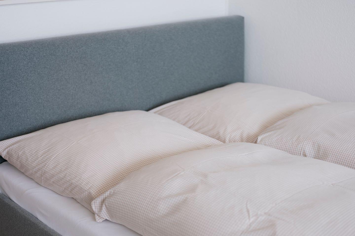 Der Wohn- und Schlafbereich ist offen gestaltet und mit einem bequemen Doppelbett, einem Essplatz sowie einer gut ausgestatteten Kochnische eingerichtet – ideal für kleine Mahlzeiten zwischendurch oder ein gemütliches Frühstück. Das moderne Badezimmer verfügt über Dusche, Waschtisch und WC.