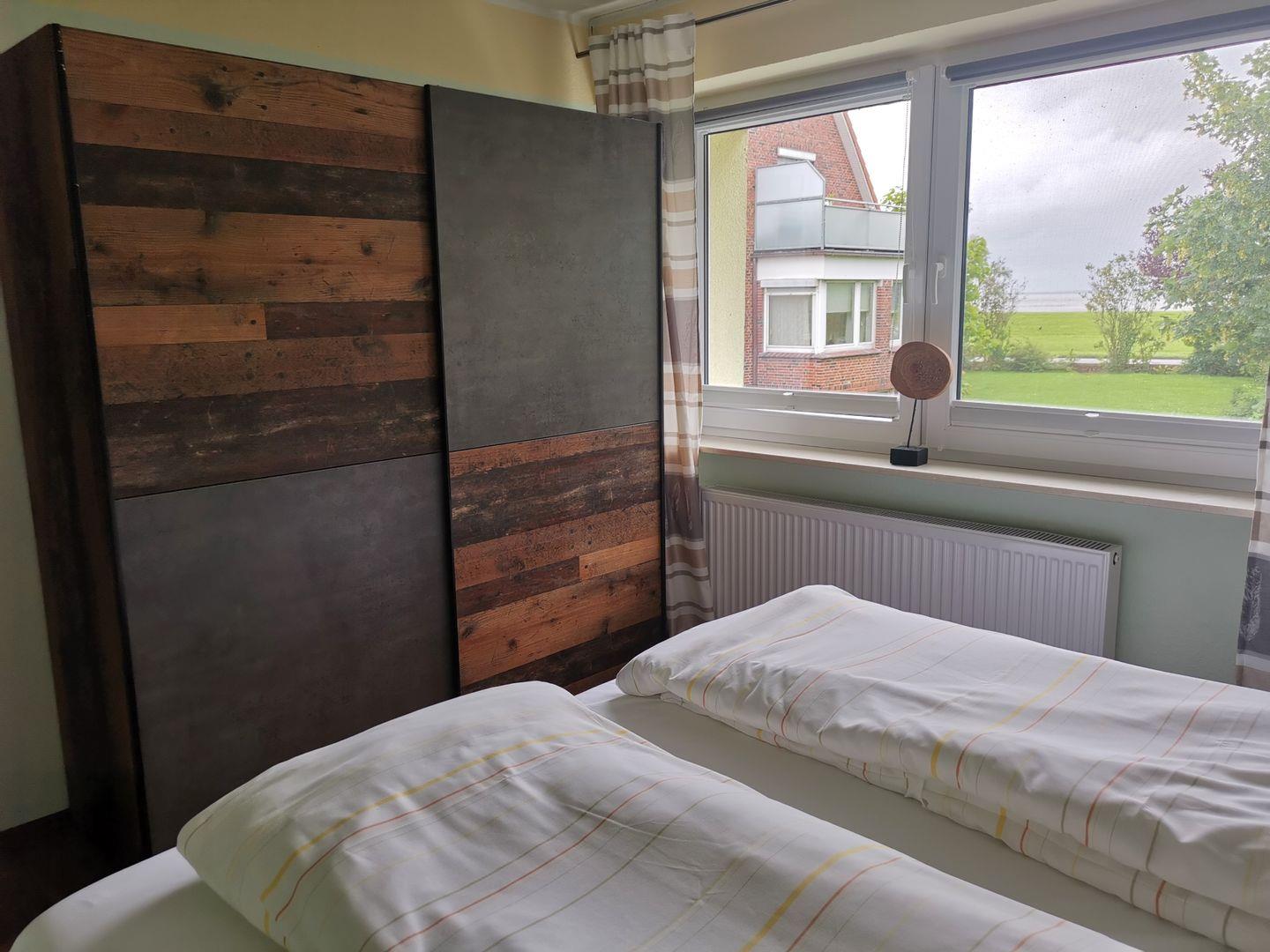 Vom Wohn- und Schlafzimmer schauen Sie über den Deich auf den Hafen & das Meer. NICHTRAUCHERWOHNUNG. WLAN. Ein Außensitzplatz befindet sich am Haus.