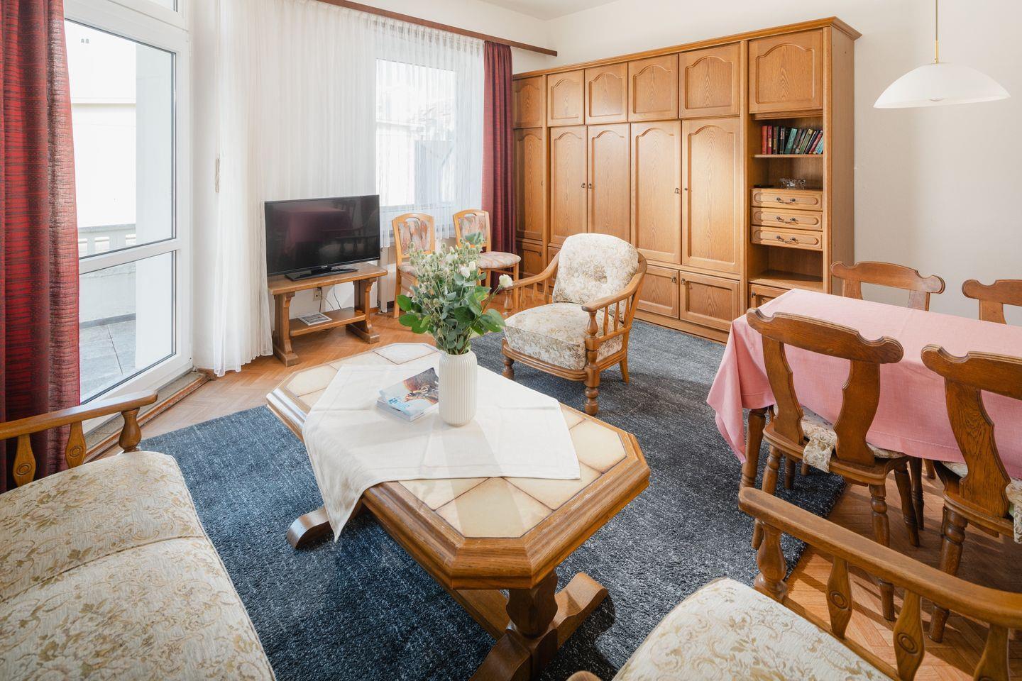 Ferienwohnung 1 im Haus Tiemann mit großzügigem Eck-Balkon, teilweise Meerblick.