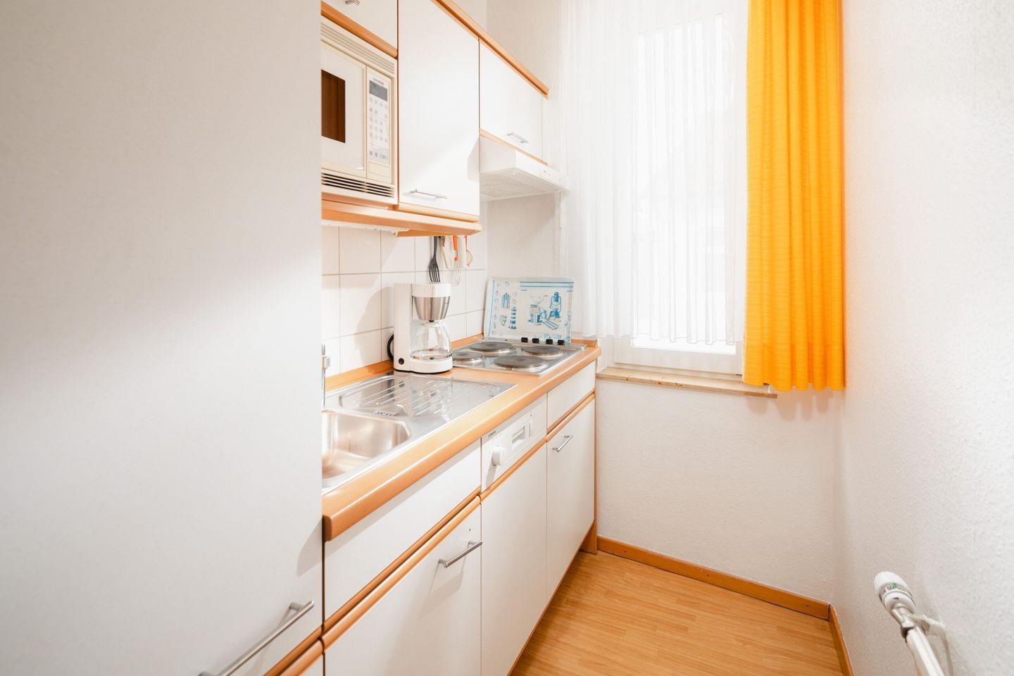 Das Haus Meeresblick, Damenpfad 24 liegt zentral und in unmittelbarer Nähe der Strandpromenade und der Strandkorbwiese. Die Wohnung 4 liegt im 1. OG, ohne Fahrstuhl. Das Kur - und Einkaufszentrum, das BADEHAUS und die Fußgängerzone sind in wenigen Minuten zu Fuß zu erreichen. Das Haus hat 7 Wohnungen und ist ganzjährig geöffnet. Viel Holz wurde verwendet, um eine wohnliche Atmosphäre zu schaffen. Die Treppen sind mit Läufern ausgelegt, so dass unbedingte Ruhe gegeben ist. Zur kompletten Ausstattung aller Wohnungen gehören Kabel-TV. Tiere können nicht mitgebracht werden