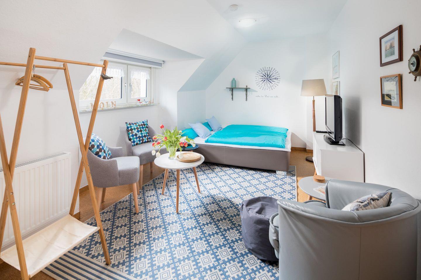 Die Ferienwohnung „Himmelsrichtung“ befindet sich im ersten Obergeschoss eines
