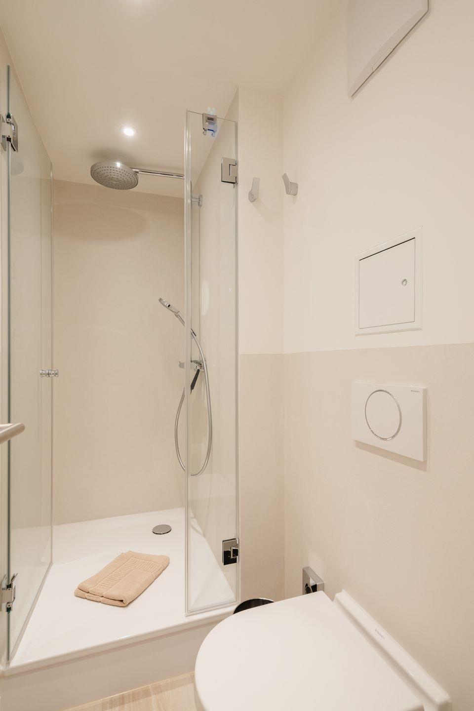 Haupthaus: Die Wohnung H4 liegt im 1. Stock des Haupthauses, welches über einen Aufzug verfügt. Zur Ausstattung der Küche gehören unter anderem ein 2-Platten-Herd sowie eine Mikrowelle, ein Geschirrspüler, eine Filterkaffeemaschine und eine Kapselkaffeemaschine. Fahrräder der Hausgäste können im Innenhof abgestellt werden; Waschmaschine und Wäschetrockner stehen zur gemeinschaftlichen Nutzung im Untergeschoss bereit.