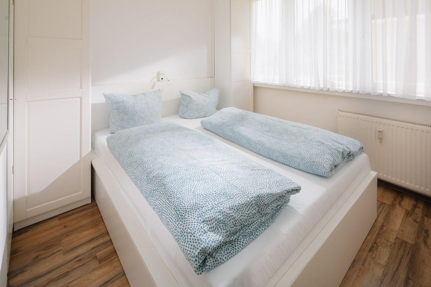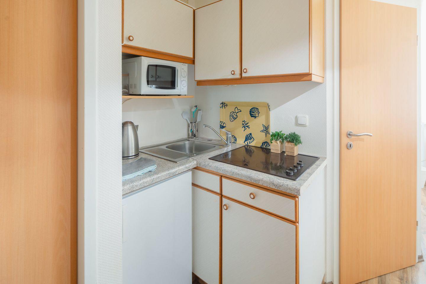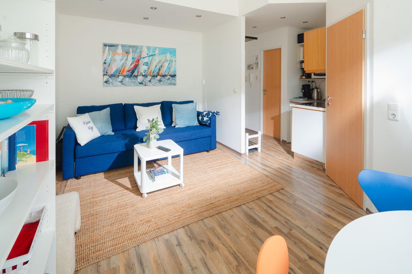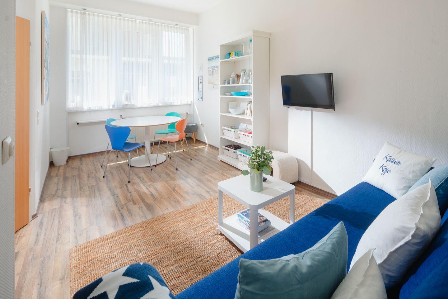 Die Wohnung verfügt über ein Schlafzimmer, das mit einem Doppelbett ausgestattet ist. Das moderne Bad verfügt über eine Dusche. Der zentrale Punkt der Wohnung ist das Wohnzimmer mit integrierter Küchenzeile (Wohnküche). Ein Highlight der Wohnung sind die elektrischen Außenjalousien. Im Apartmenthaus "Kaiserhof" stehen den Bewohnern eine Waschmaschine und ein Wäschetrockner (beide mit Münzeinwurf) zur Verfügung. Zusätzlich steht eine Sauna bereit, die ebenfalls gegen Münzeinwurf nutzbar ist. Es ist zu beachten, dass das Schwimmbad aufgrund eines technischen Defektes geschlossen ist. Fahrräder können vor dem Haus (Nordseite) oder im Fahrradraum abgestellt werden. Hunde sind in dieser Wohnung nicht erlaubt.