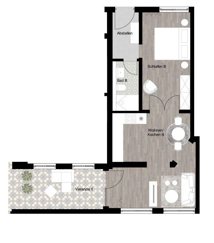 Die 2-Raum-Ferienwohnung in der Villa Alexander (ca. 50 qm²) verfügt über ein separates Schlafzimmer mit Doppelbett, Wohnraum, vollständig eingerichtete Küchenzeile sowie Badezimmer mit Dusche/WC. Gemeinschaftsterrasse auf der Veranda.