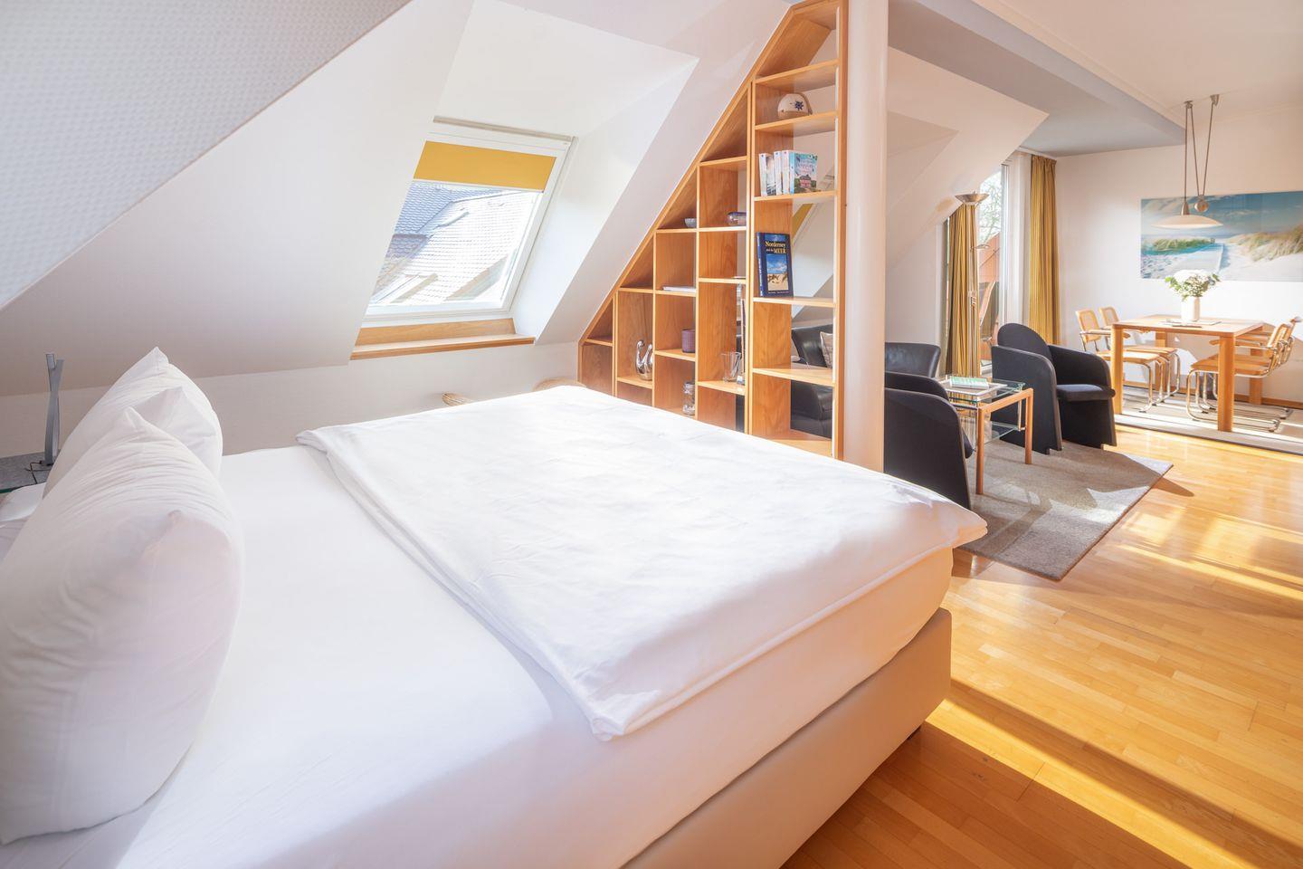 Die Ferienwohnung Seestern auf Norderney bietet auf 45 m² Platz für bis zu 2 Personen und befindet sich in der 3. Etage eines Gebäudes mit Fahrstuhl. Die zentrale Lage zwischen Innenstadt und Kurpark macht sie zum idealen Ausgangspunkt für Erkundungen der Insel. Die Wohnung verfügt über ein kombiniertes Wohn- und Schlafzimmer mit einem gemütlichen Essbereich und einer gut ausgestatteten Küche. Das komfortable Doppelbett verfügt über die Maße 180x200cm. Ein Süd/westlicher ausgerichteter Balkon lädt zum Entspannen bei Sonnenuntergängen ein. Das moderne Badezimmer bietet zusätzlichen Komfort. Im Haus stehen eine gemeinschaftliche Waschmaschine und ein Trockner zur Verfügung. Fahrradstellplätze befinden sich direkt am Haus, sodass Sie die Insel bequem mit dem Rad entdecken können.