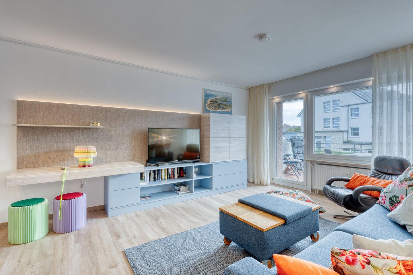 Die Ferienwohnung MeerZeit Norderney hat die Adresse Tannenstrasse, direkt in der „Einflugschneise“ vom Riffkieker und Surfcafe. Die Wohnung befindet sich im 1. Obergeschoss und verfügt über einen Balkon mit Morgen- und Mittagssonne, 2 Deckchairs und 2 Stühlen mit Hockern, jeweils mit Auflagen und einem großen Tisch. Sie ist gut 50qm groß, sehr gut geschnitten, luxeriös mit allem Komfort und Annehmlichkeiten ausgestattet, komplett renoviert, geschmackvoll und modern eingerichtet. Ein Schlafzimmer, das Bett mit 2 getrennten Matratzen, ein Bad mit kombinierter Badewanne/Dusche/WC. Fühlt Euch wohl in dem gemütlichen, großzügigen Ess- und Küchenbereich, das Wohnzimmer hat eine TV Schrankwand mit Schreibtischboard für Laptops oder Spielekonsolen. Wer gerne kocht, kann einen hervorragenden Backofen nutzen mit zuschaltbarer Mikrowelle und Gewürze können genutzt werden. Das Schlafsofa im Wohnzimmer ist sehr hochwertig und hat ebenfalls 2 getrennte Matratzen. Die Wohnung liegt recht zentral.