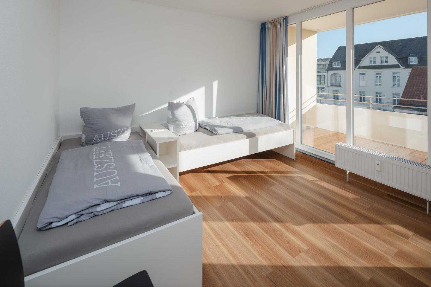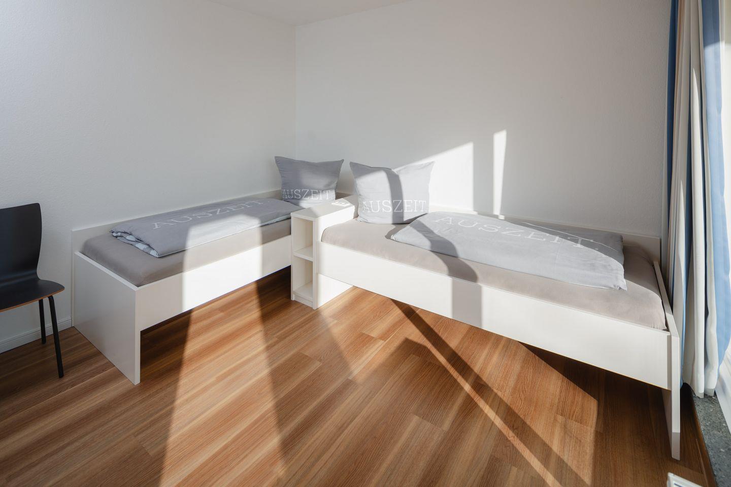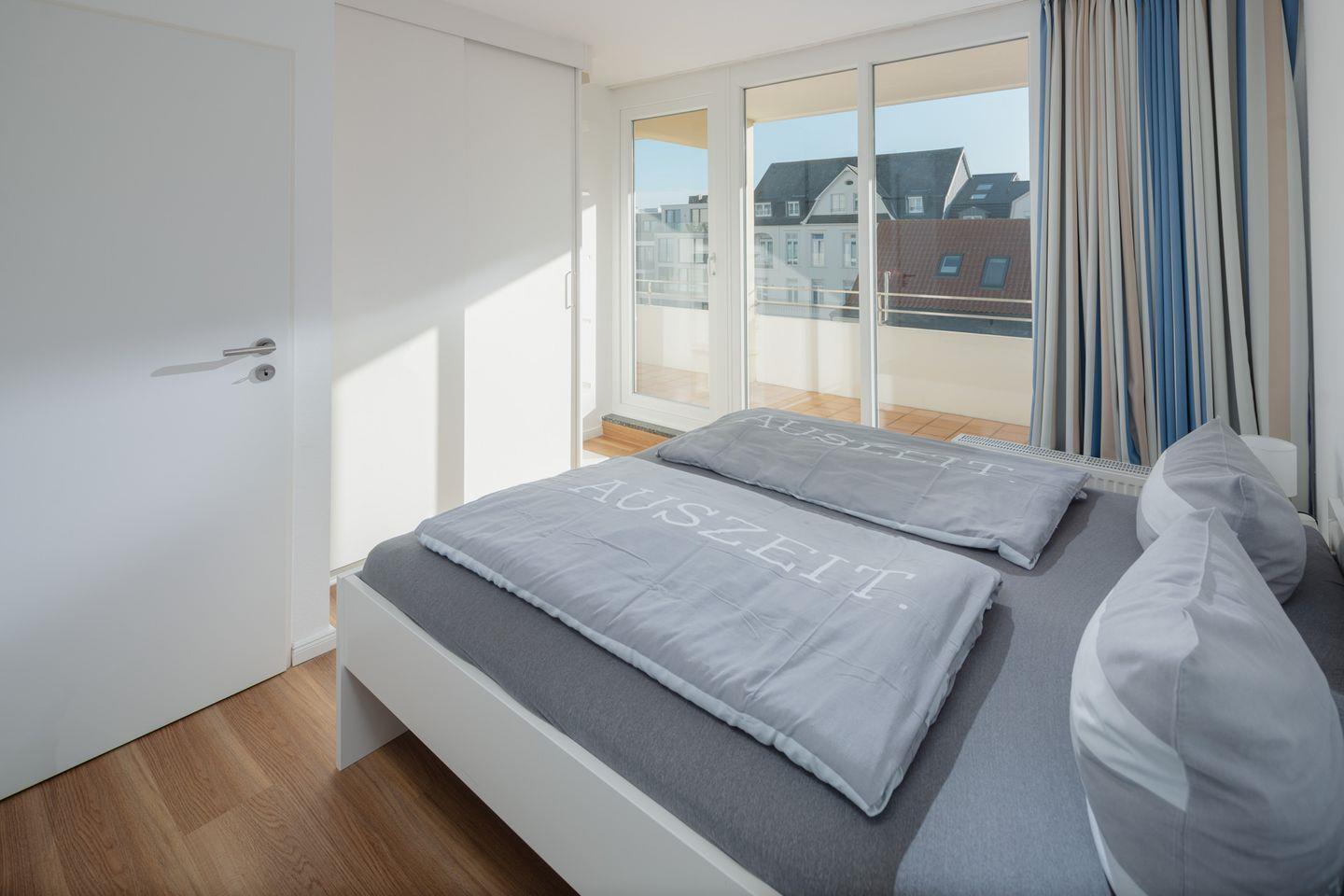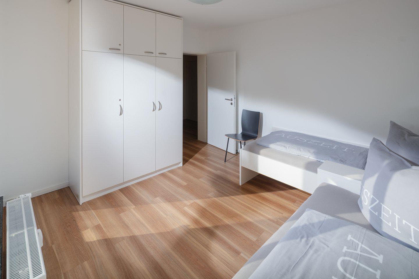 Zwei modern eingerichtete Schlafzimmer garantieren eine erholsame Nachtruhe. Die Schlafzimmer sind mit Vinylboden ausgestattet und bieten den perfekten Rückzugsort nach einem erlebnisreichen Tag. Zudem gibt einen direkten Zugang zum zweiten Balkon und ausreichend Stauraum, natürlich auch eine Garderobe. Für die kleinen Gäste stehen auf Nachfrage ein Babybett und ein Hochstuhl zur Verfügung, damit auch die Jüngsten ihren Aufenthalt sorglos genießen können.