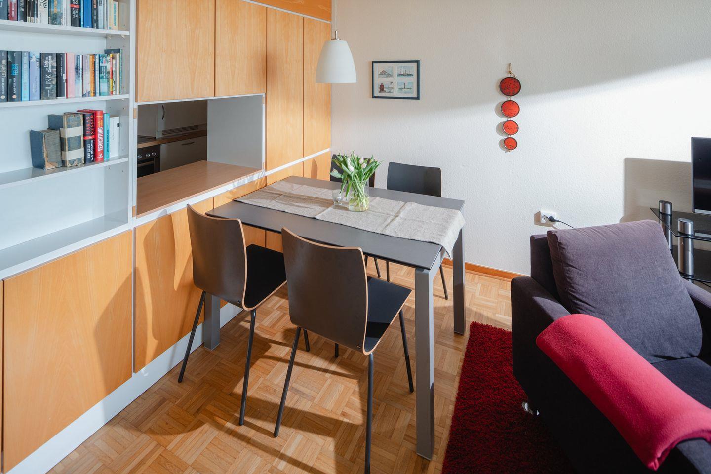 Die 90 m² große Wohnung liegt im 3. Stock und besticht durch ihren fantastischen Ausblick auf die Nordsee. Vom Fahrstuhl aus, gelangen Sie über wenige Stufen in die Wohnung. Der offene und lichtdurchflutete Wohnbereich ist mit einem gemütlichen Sofa und einem Sessel ausgestattet, die zum Entspannen einladen. Hier können Sie es sich bei einem Film auf dem 32 Zoll großen TV oder einem spannenden Buch gemütlich machen, während das WLAN für volle Netzwerkanbindung sorgt. Der darin integrierte Essbereich bietet Platz für gemeinsame Mahlzeiten und gesellige Abende mit Ihren Liebsten. Der Wohnbereich sowie die Küche ist über eine kleine Treppe (8 Stufen) vom Hausflur aus erreichbar.