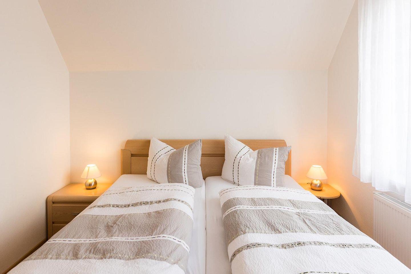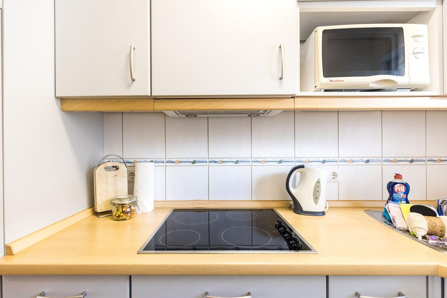 Zwei komfortable Schlafzimmer sorgen für erholsame Nächte, während das helle Wohnzimmer mit Sofaecke und TV zum Verweilen einlädt. In der voll ausgestatteten, geschlossenen Küche mit Cerankochfeld, Geschirrspüler, Mikrowelle und Kaffeemaschine kannst du mühelos deine Lieblingsgerichte zubereiten. Der große Esstisch bietet Platz für gemeinsame Mahlzeiten mit Blick auf die Umgebung.