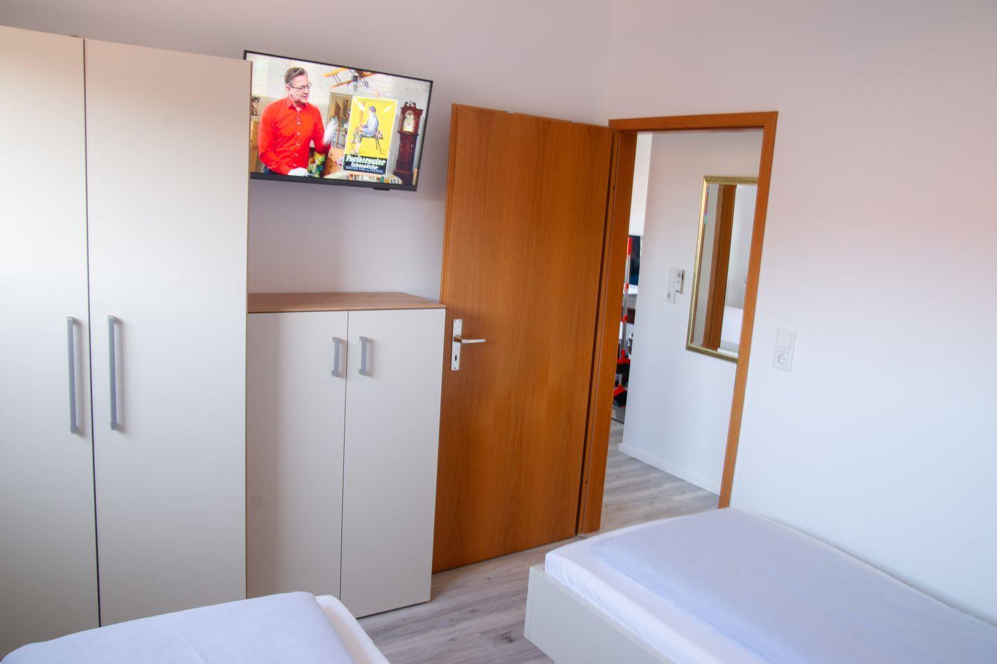 Wohnzimmer mit TV und zusätzlich ein TV in beiden Schlafzimmern