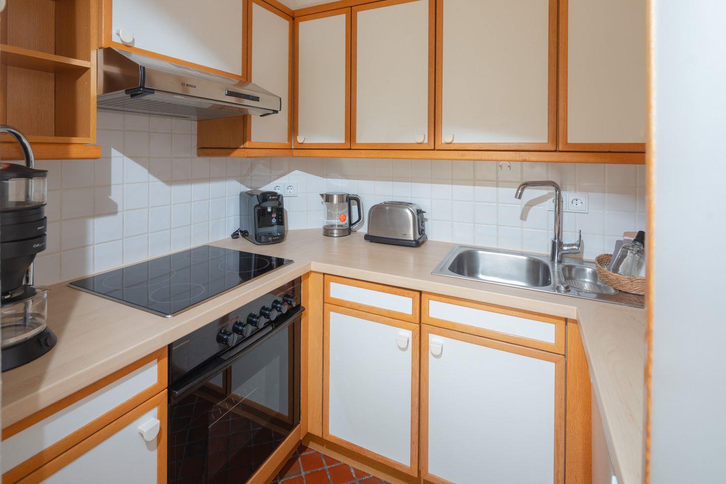 Die Wohnung verfügt über ein separates Schlafzimmer mit gemütlichem Doppelbett (180x200cm) und ein Schlafsofa im Wohnzimmer. Die voll ausgestattete Küche lädt zum gemeinsamen Kochen ein, während das Badezimmer sowie ein zusätzliches separates WC für Komfort sorgen.