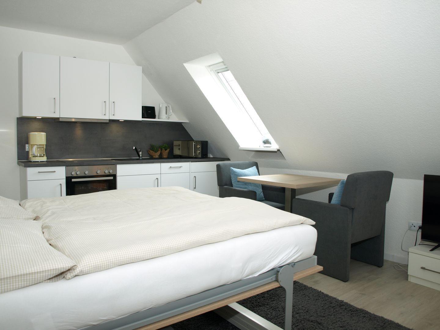 Helle & geräumige 1-Raum-Ferienwohnung mit Schrankbett – zentral & ruhig auf Norderney