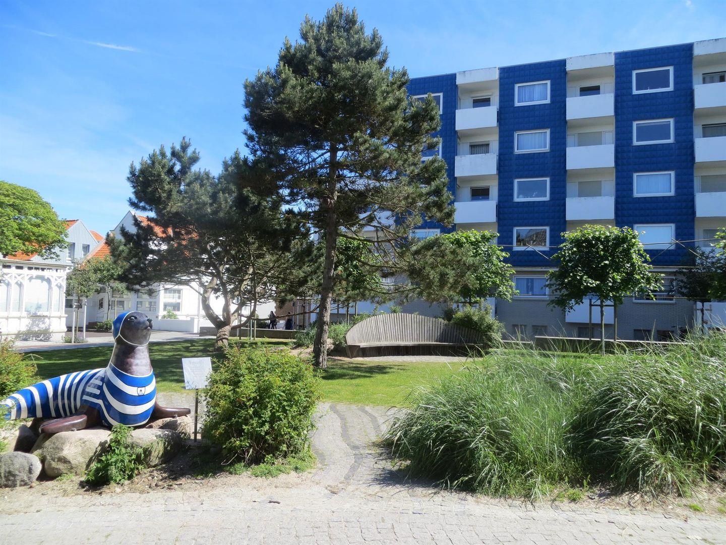 Das Haus ist Zentral gelegen. Ca 300 Meter sind es zur Promenade. Ca 500 Meter zum Nordbad Badestrand. Die Bushaltestelle Molkestrasse ist 150 Meter entfernt. Am Haus ist der Onnen Visser Platz eine kleine Grünanlage mit Sitzgelegenheiten und einer Bücher Ecke.