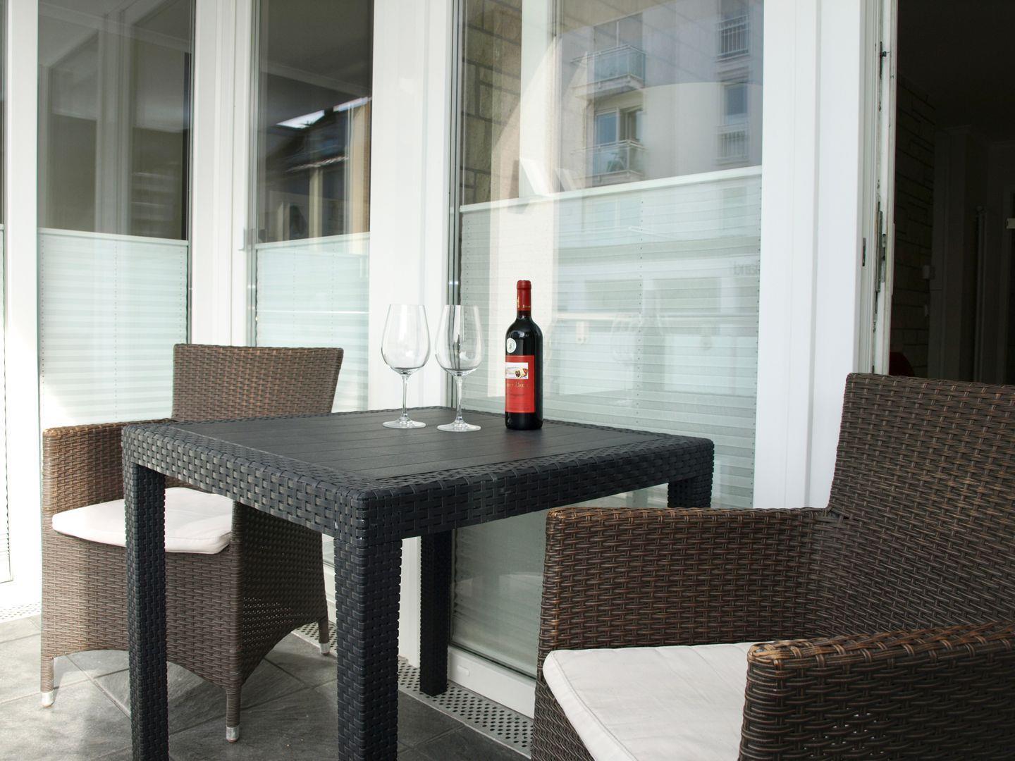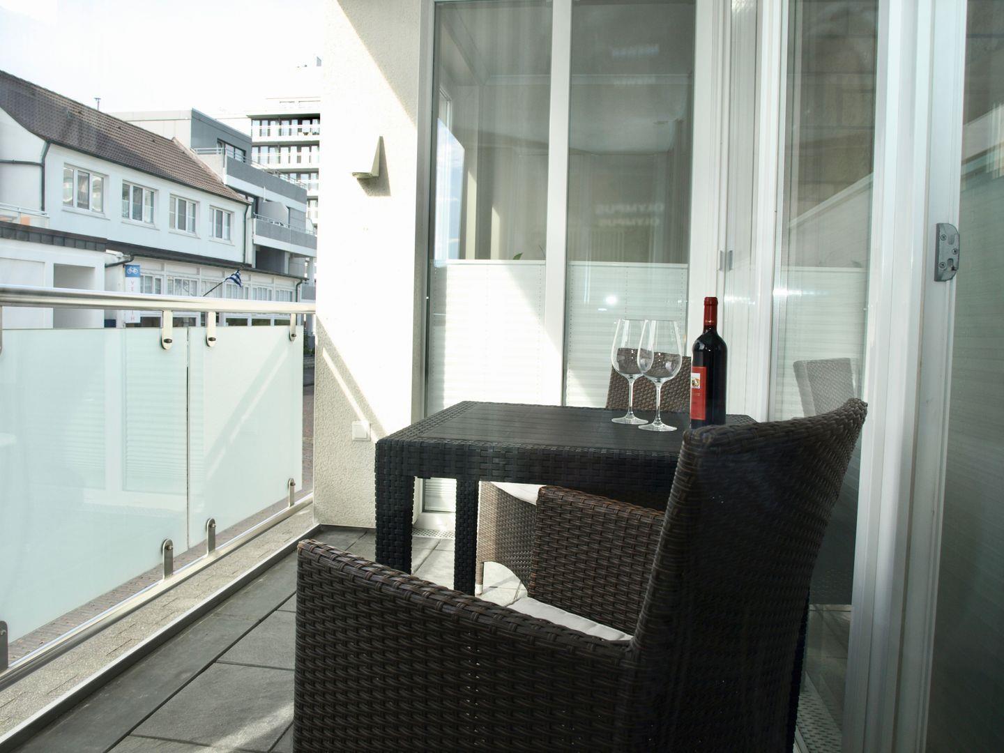 Genießen Sie unbeschwerte Urlaubstage in dieser stilvollen 2-Zimmer-Wohnung im Düsseldorfer Hof. Auf rund 58 m² erwartet Sie moderner Komfort mit separatem Schlafzimmer, großzügigem Wohnbereich samt Küchenzeile und einem geschützten West-Balkon – perfekt, um die Sonne am Nachmittag zu genießen.
