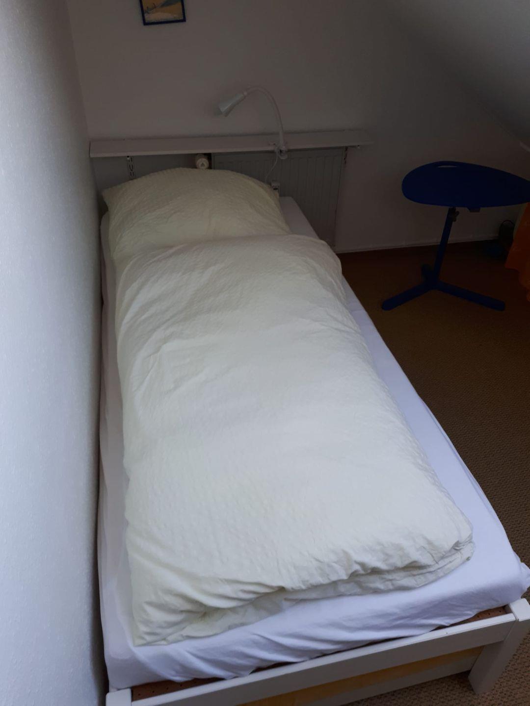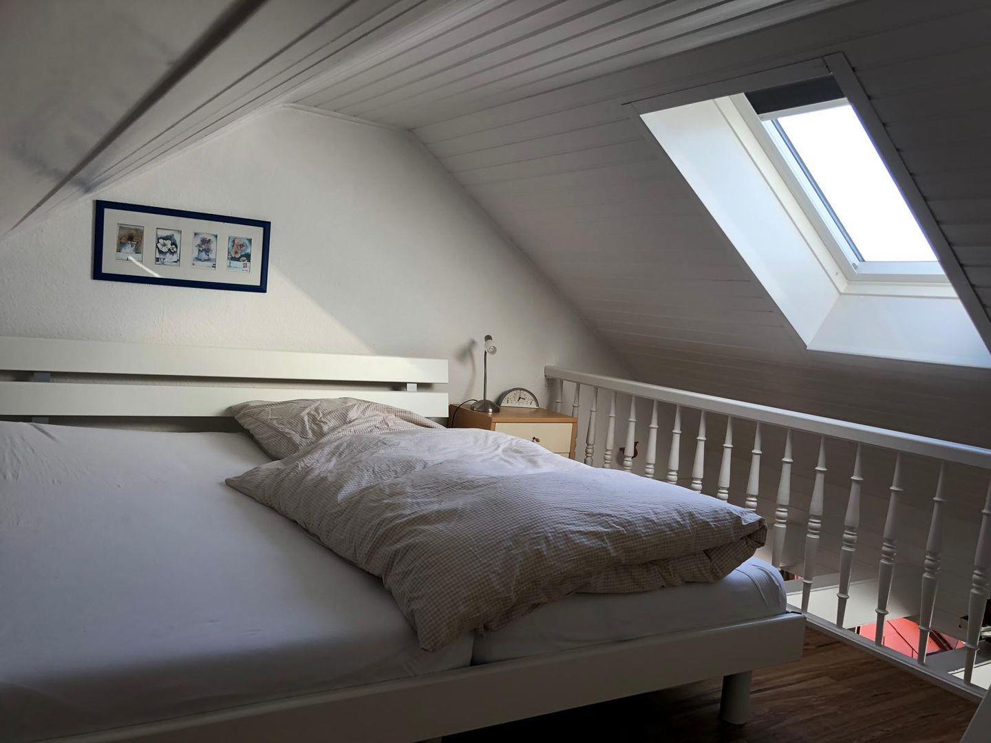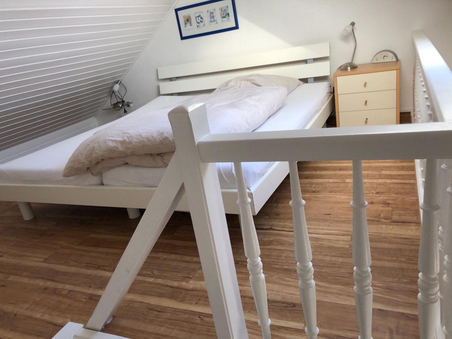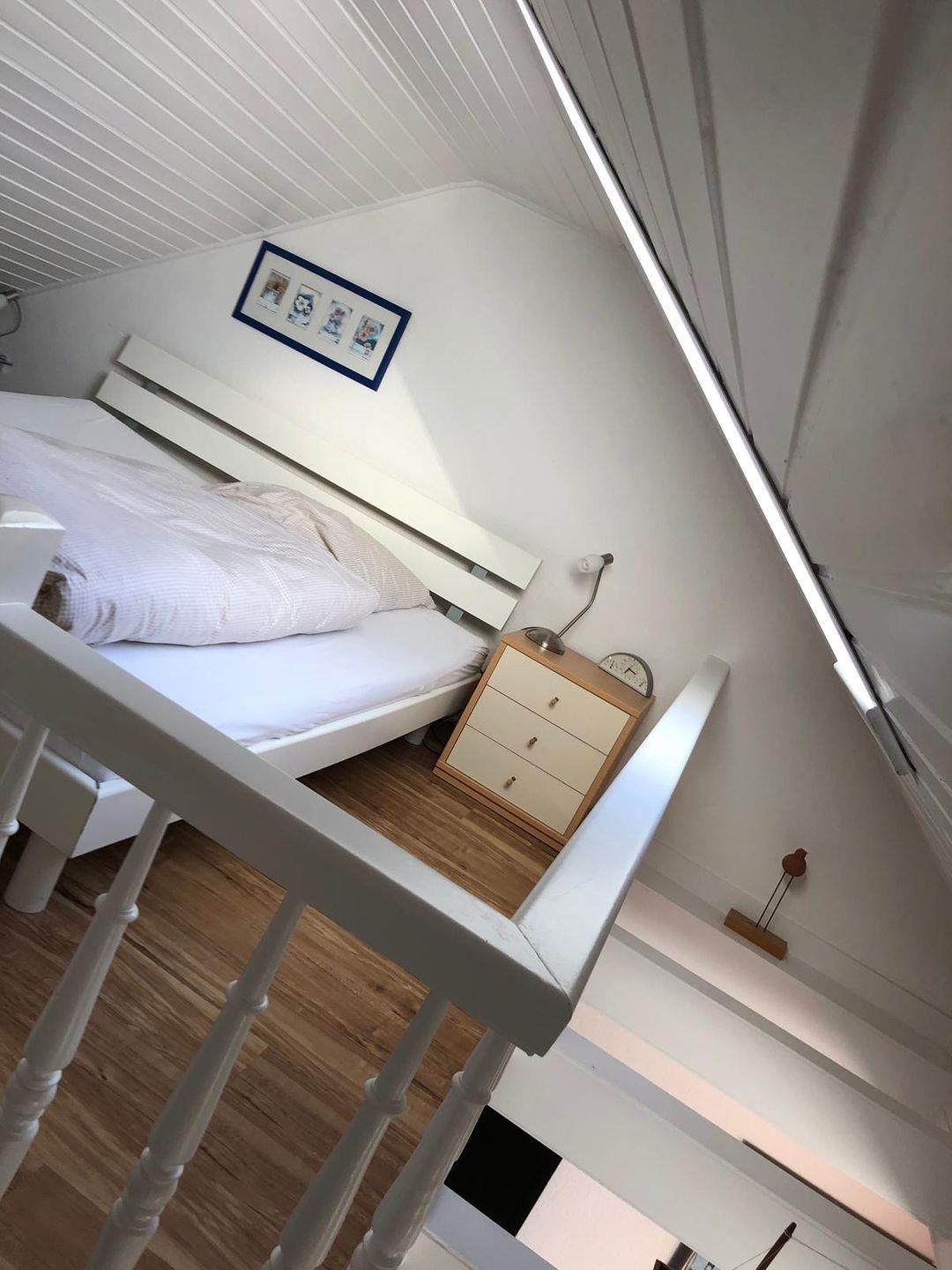 Die Wohnung hat eine kleine Küche, ein separates Zimmer mit einem Einzelbett. Über dem Wohnzimmer auf der Empore befindet sich das Schlafzimmer mit Doppelbett. Das moderne Duschbad verfügt über eine abschließbare Toilette.