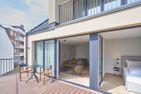 Die Wohnung besticht durch ihren modernen, cleanen Look und die Verwendung von hochwertigen Naturmaterialien. Das individuelle und stilvolle Interieur ist inspiriert von den Farben und Kontrasten aus Sand und Meer, Sonne und Himmel. Das Schlafzimmer verfügt über ein Doppelbett (1,80m x 2,00m). Die kleine Küchenzeile im Wohnbereich ist voll ausgestattet. Ein Highlight der Wohnung "Brigg" ist die große Terrasse (ca. 18 qm) in süd-östlicher Ausrichtung zur Halemstraße. Diese ist mit einem Strandkorb ausgestattet. Gäste der Ferienwohnung "Brigg" können zudem die Annehmlichkeiten des Hotels "Misan" nutzen. Nach vorheriger Anmeldung steht den Gästen die Nutzung der Hotelsauna kostenfrei zur Verfügung und das Hotelfrühstück kann zugebucht werden. Das Hotel ist über den Innenhof direkt zugänglich und somit auf kurzem Weg zu erreichen. Hunde sind in dieser Wohnung nicht erlaubt.