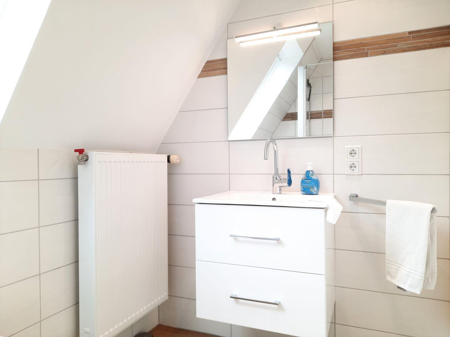 das separate Schlafzimmer mit Doppelbett (1,80 x 2,00m) bietet problemlos Platz für ein eventuell benötigtes Kinderreisebett. Der Wohn-Schlafraum verfügt über ein Schlafsofa, kleine Küchenzeile mit 2-Plattenherd und Essecke. Tageslichtbad mit Dusche/WC. Im Haus befinden sich 2 weitere Ferienwohnungen. Lebensmittelgeschäft und Bäcker sind um zwei Ecken schnell fußläufig zu erreichen.