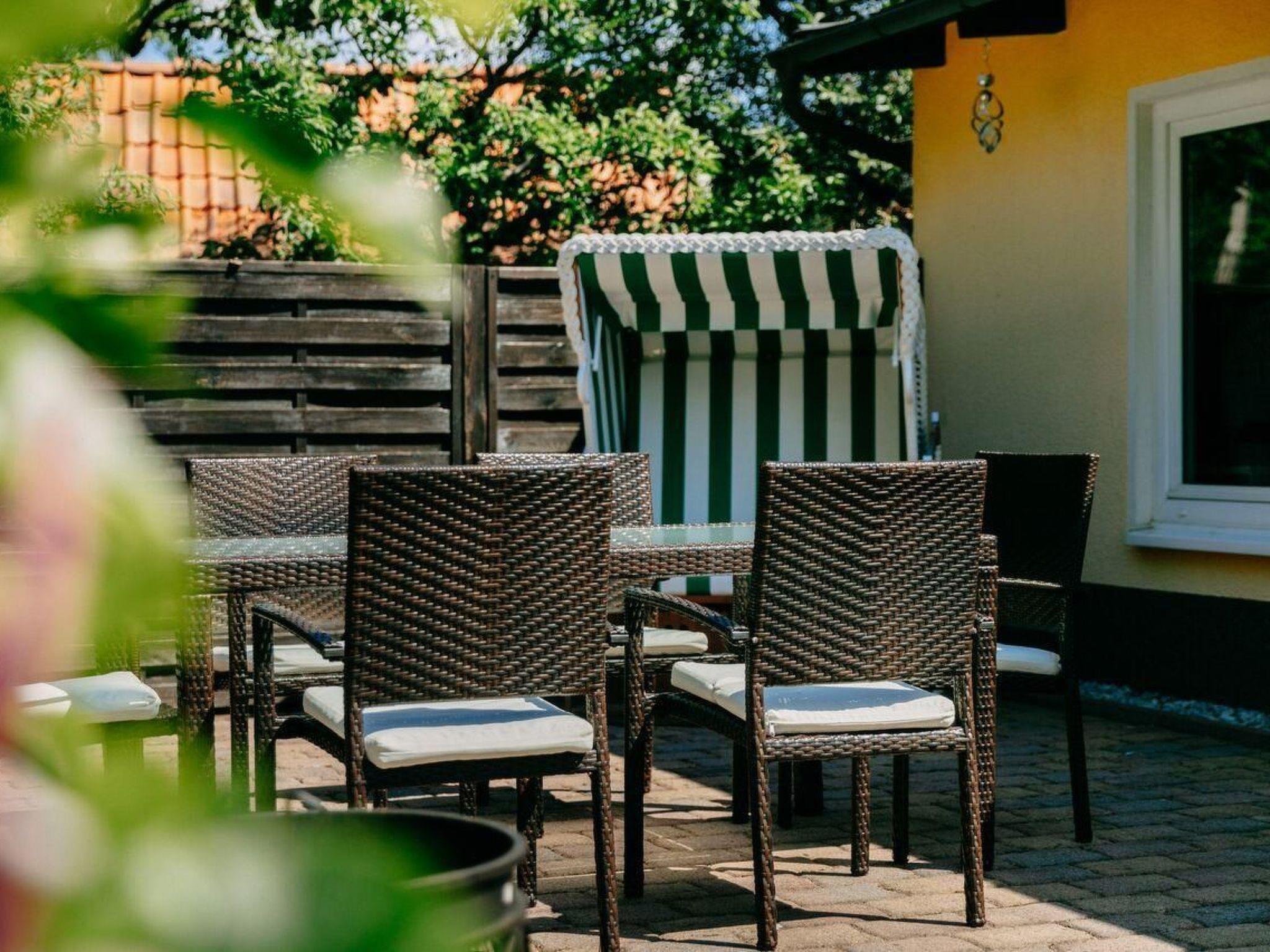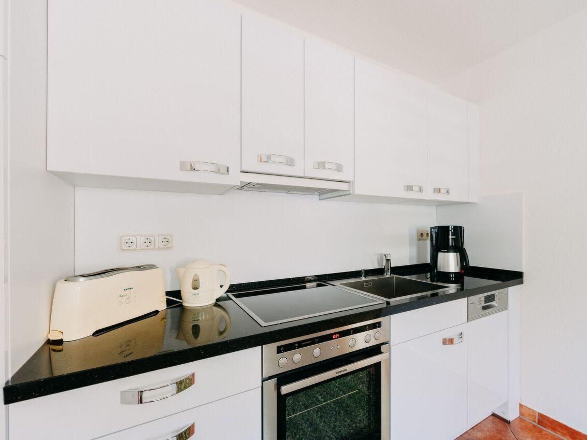 Inside, you will be greeted with stylish furnishings that leave nothing to be desired. The living room/bedroom, which offers a picturesque view of the garden, is furnished with a comfortable double bed, a spacious wardrobe, a flat-screen TV and a stereo system. The modern kitchen has all amenities such as a cooker with ceramic hob, fridge, dishwasher, coffee machine, kettle and toaster, while the spacious bathroom has a shower and washing machine for your convenience.
