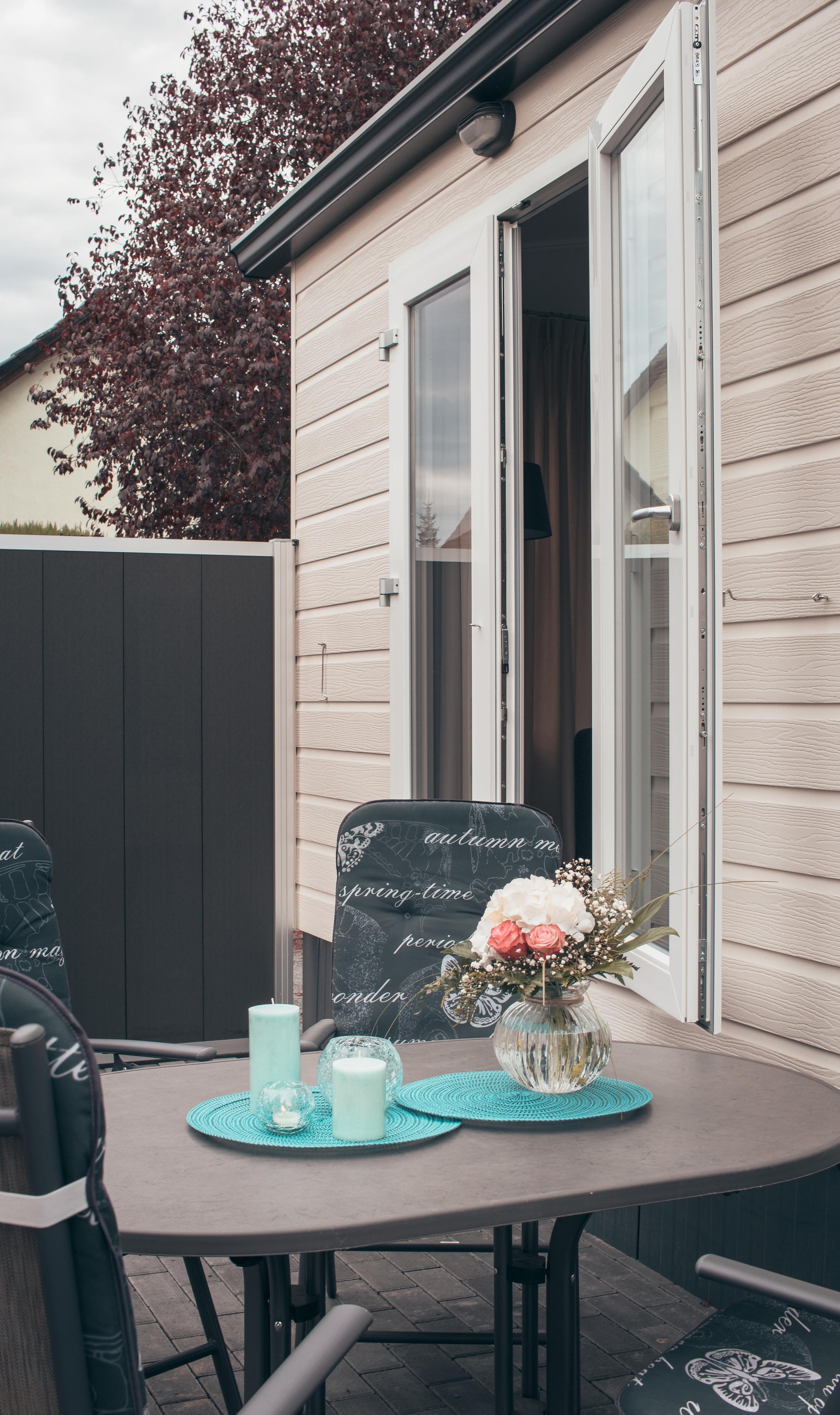 Das 250 m² große Grundstück mit kleinem Garten, Terrasse mit Sitz- und Grillmöglichkeiten lädt zum Entspannen und Erholen ein. Ein Gartenhäuschen bietet Platz für mitgebrachte Fahrräder, Kinderwagen und andere Sportgeräte.
