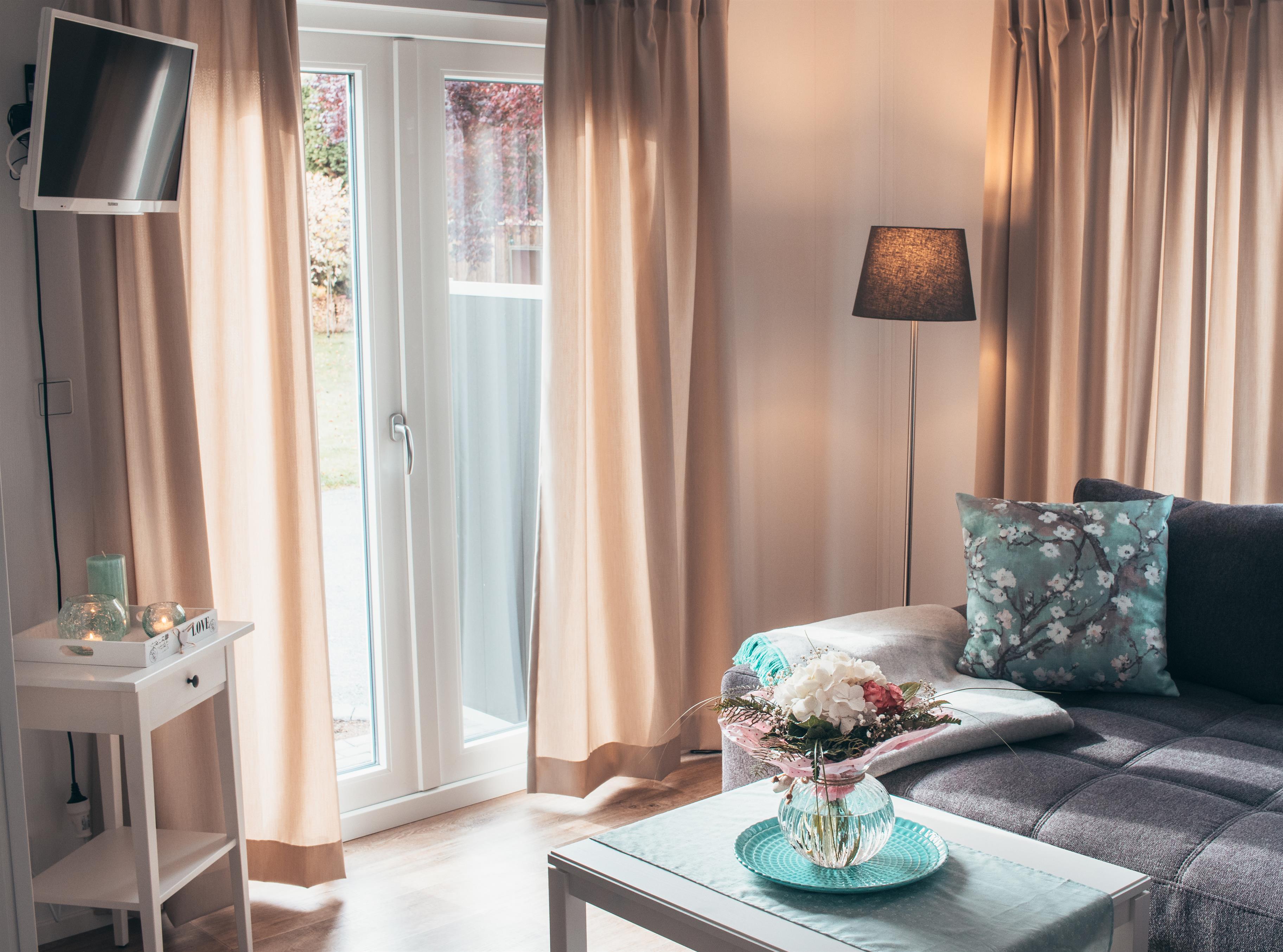Das im September 2020 fertiggestellte Haus verfügt über 1 Bad mit großer ebenerdiger Dusche, 1 Waschtisch und WC, 2 Schlafzimmer (1 Elternschlafzimmer mit Doppelbett und geräumigem Schiebetürenschrank sowie 1 Kinderzimmer mit 2 Einzelbetten und Hängeschränken). Der hell und modern eingerichtete Wohn-/Essbereich mit offener voll ausgestatteter Küche inkl. einer großzügigen Kühl-Gefrierkombination, einem Herd mit Ceranfeld und Backofen sowie integrierter Mikrowelle, einem Geschirrspüler, Kaffeemaschine, Wasserkocher und Toaster. Das Wohnzimmer verfügt zusätzlich über eine großzügige Eckcouch mit ausziehbarer Schlaffunktion und Topper. Das Ferienhaus ist weiter ausgestattet mit 1 Sat-TV mit Internetzugang