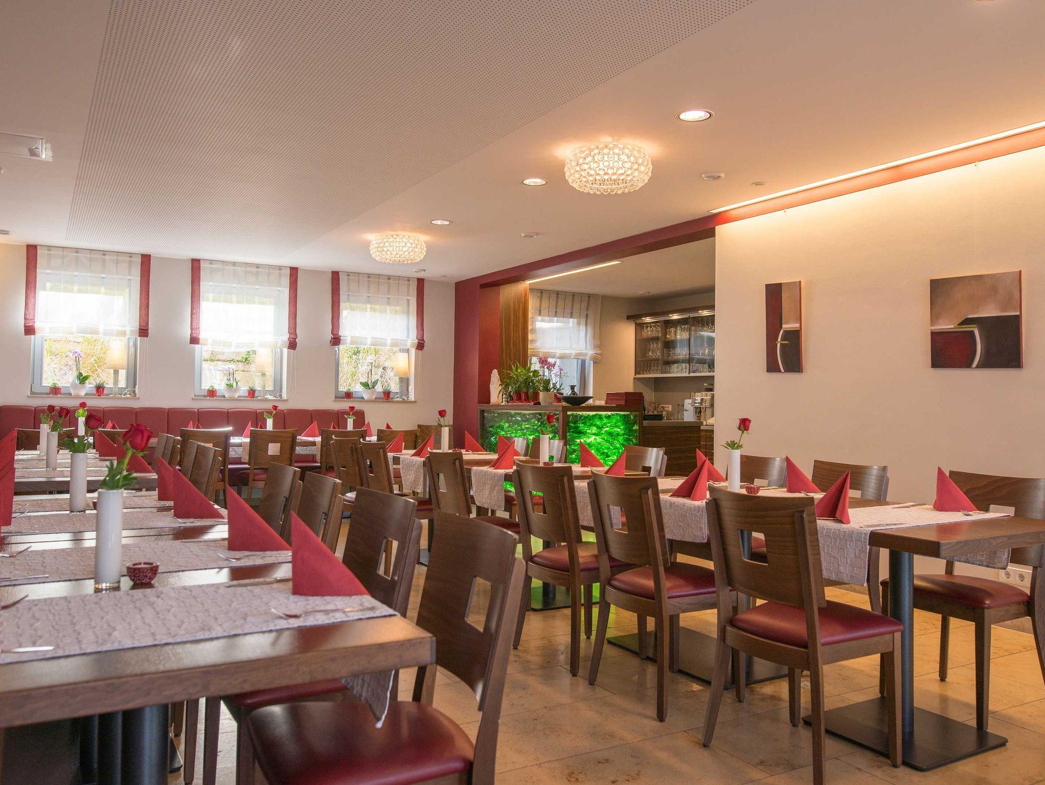 Das Frühstück wird in der hauseigenen Weinstube im Nebengebäude serviert.