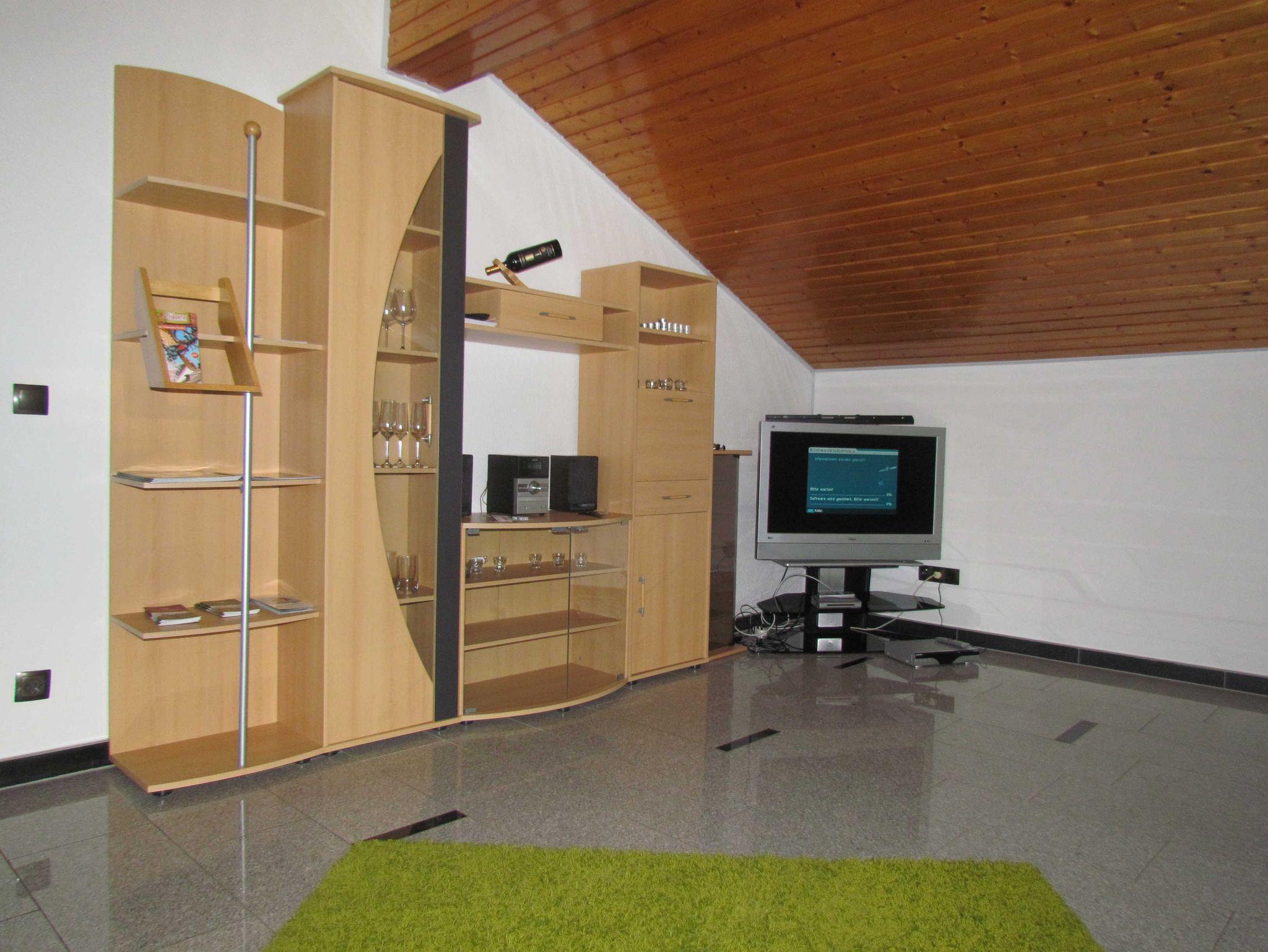 Die Couch im Wohnzimmer kann mit wenigen Handgriffen ebenfalls leicht zu einem Doppelbett (2,00 x 2,00 m) umgebaut werden..