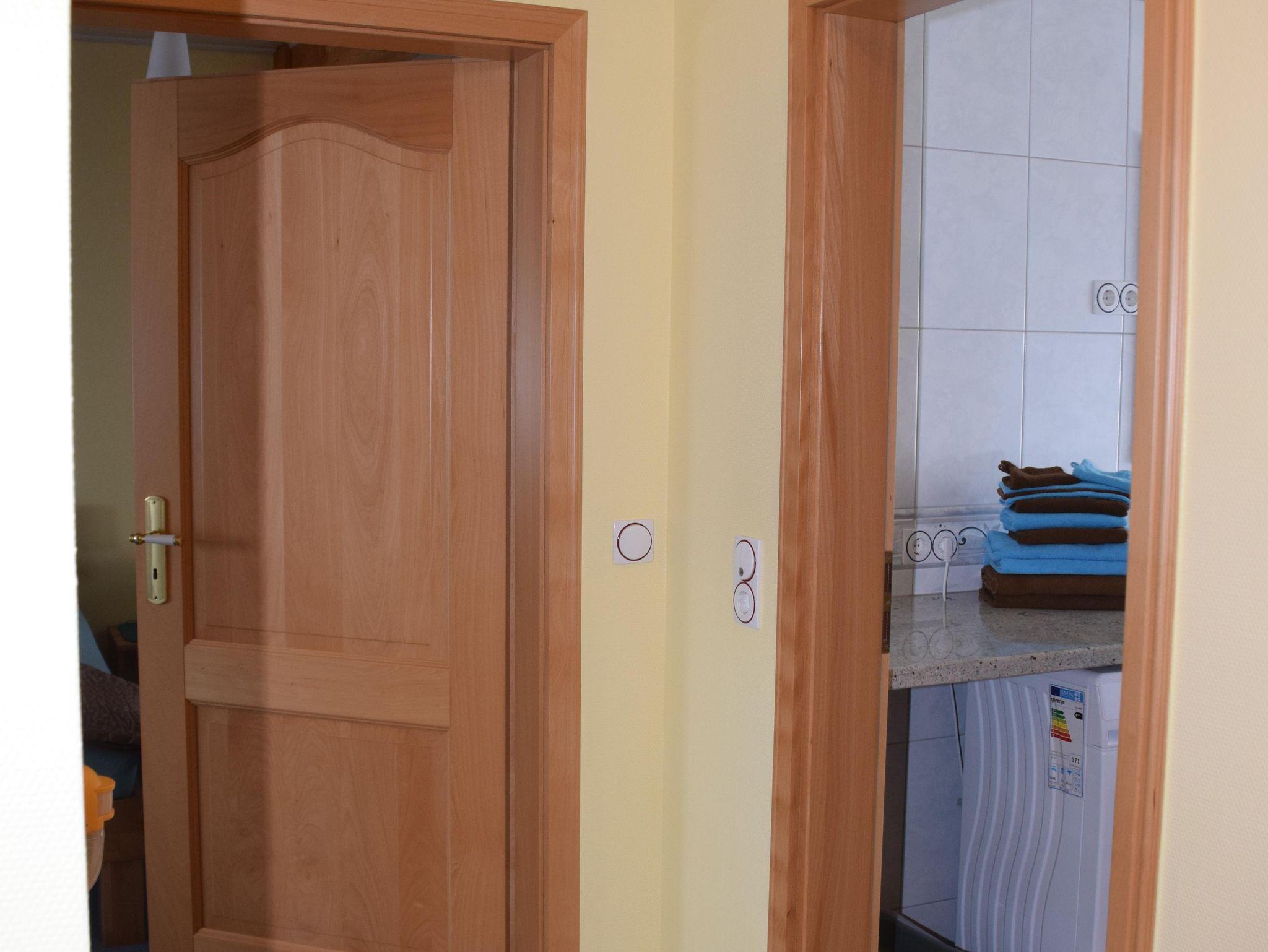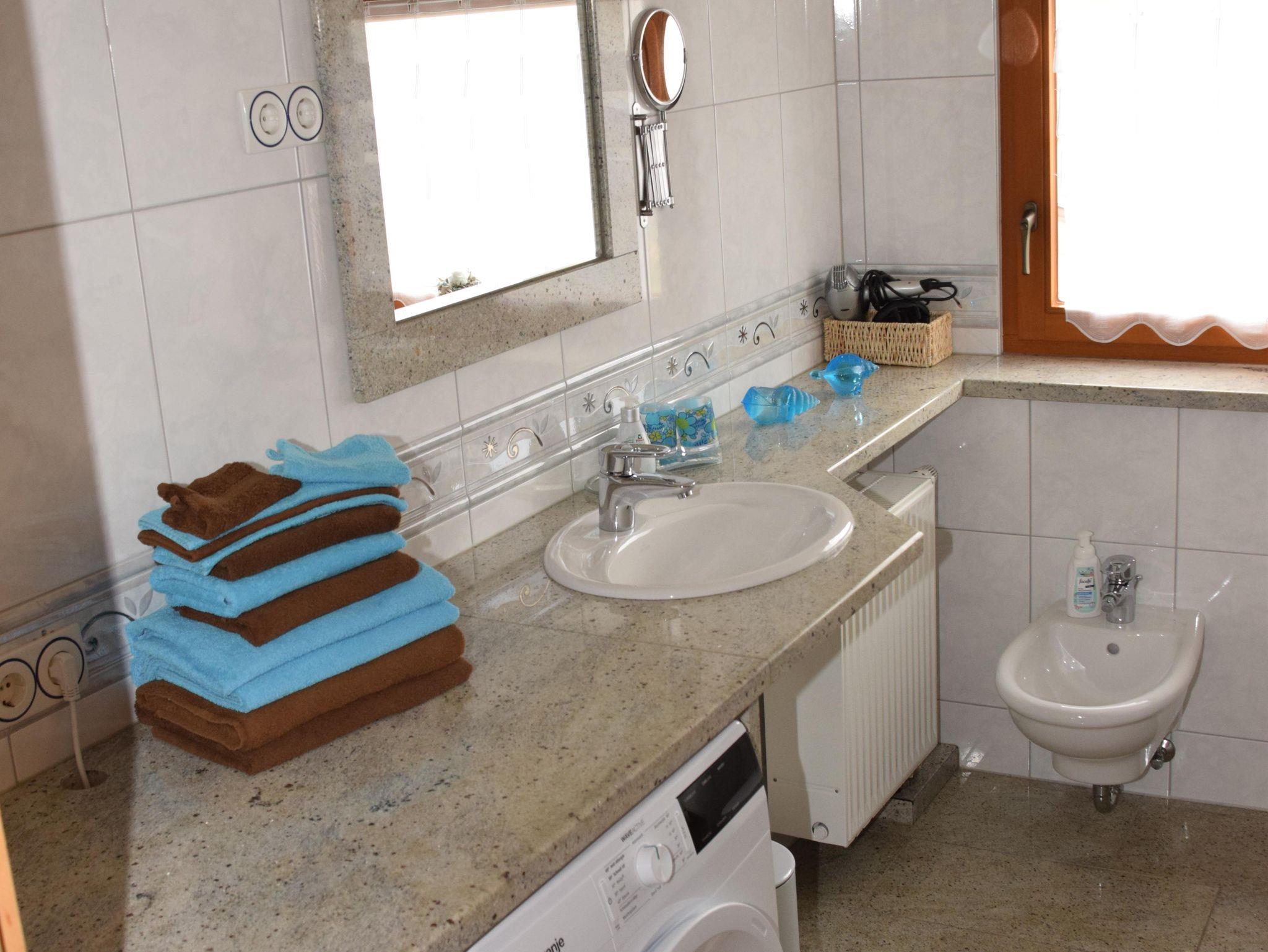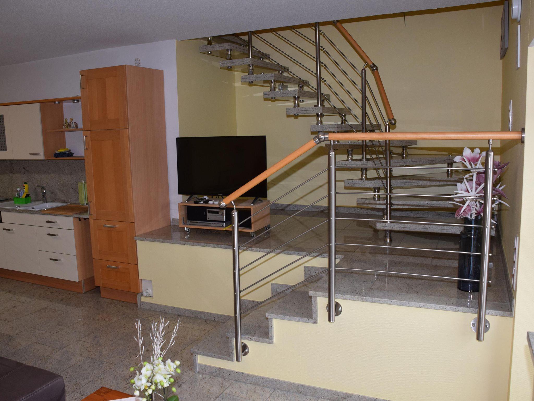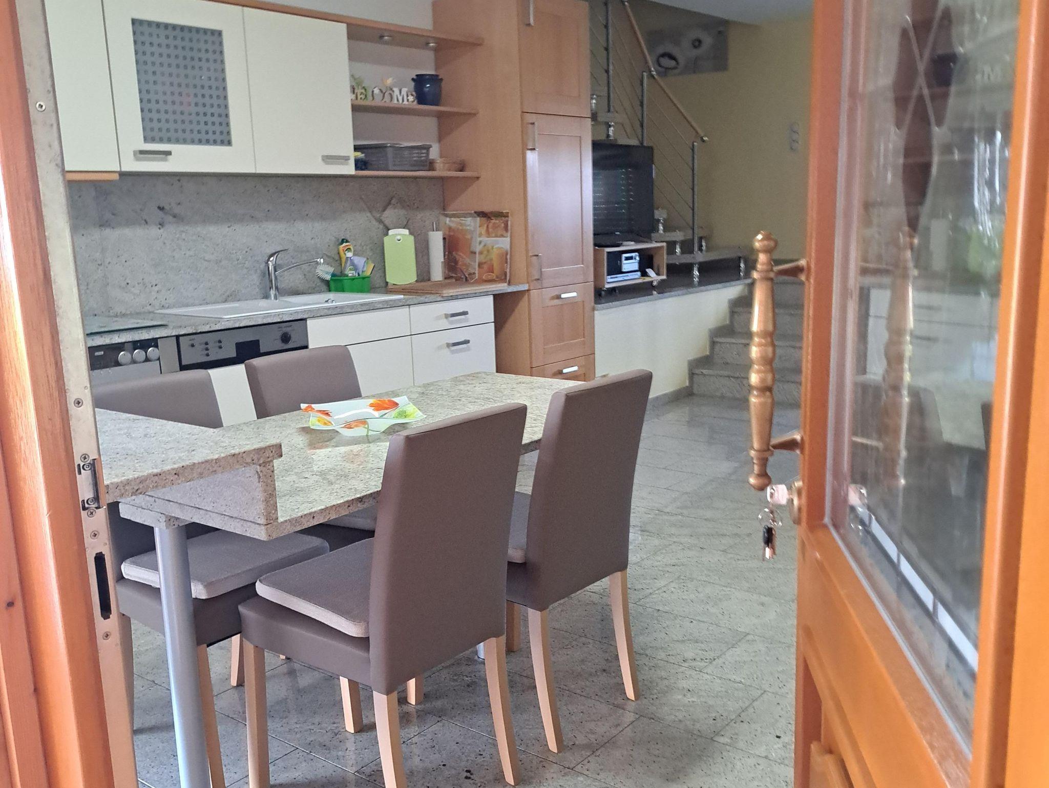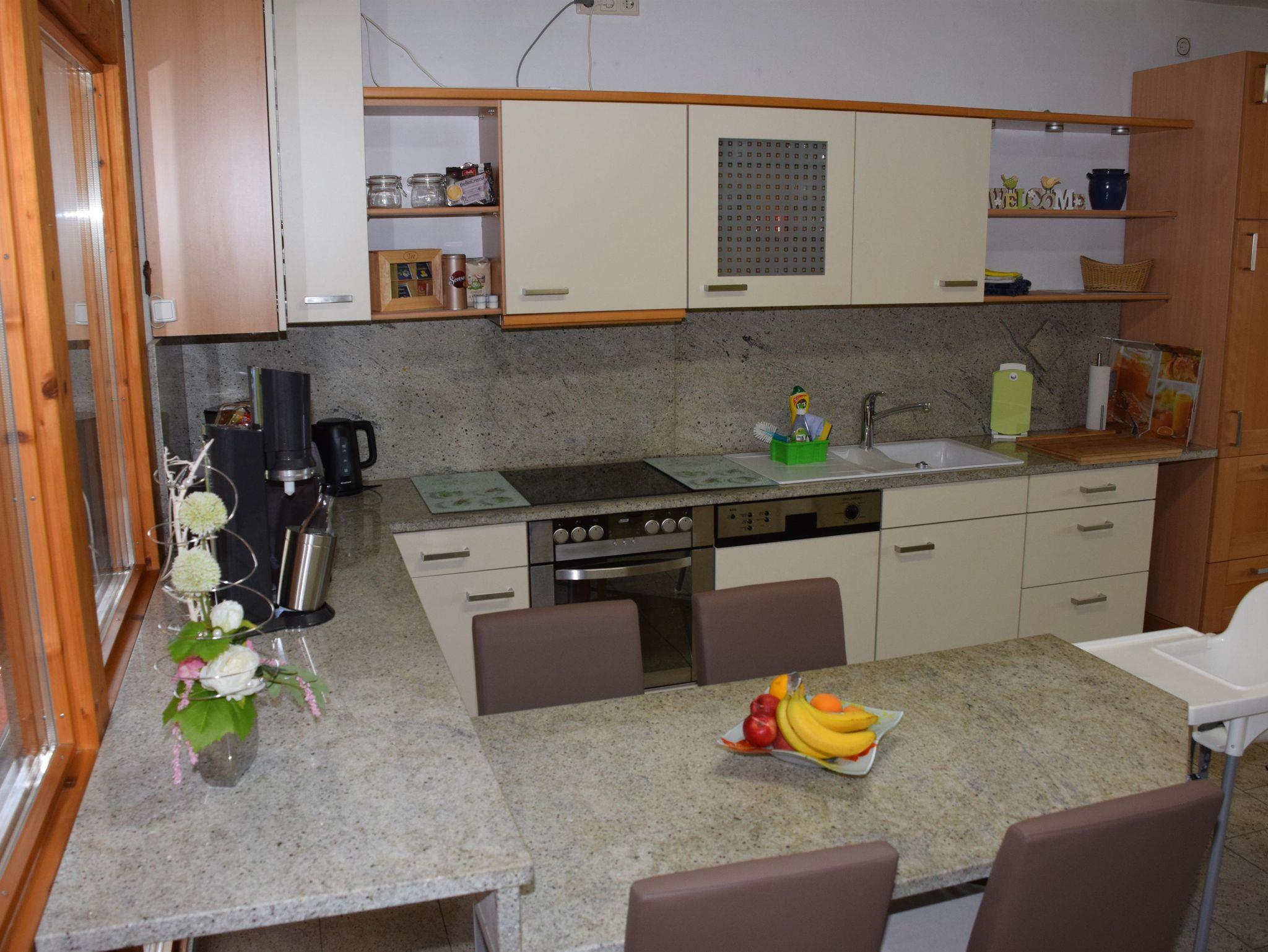 Einbauküche mit Spülmaschine, Cerankochfeld, Mikrowelle, Kühlschrank mit kl. Gefrierfach, Kaffeemaschine, Wasserkocher, Toaster, Brotmaschine, Geschirrhandtücher, Geschirr, Besteck und ausreichend Gläser. Balkon mit Tisch und 4 Stühlen, Grill und auf Wunsch einen Sonnenschirm; DVD Player, Radio/ CD Player. Für ein Kleinkind steht ein Kinderbett inkl. Bettwäsche kostenfrei zur Verfügung.Bad mit Dusche, WC, Bidet, Waschmaschine und Handtücher inkl. Bügeleisen + Bügelbrett, Staubsauger, Natursteinboden, alle Räume mit Fenster, untere Etage mit Fußbodenheizung, Inkl. Nebenkosten und Bettwäsche. Frühstück und W-Lan auf Anfrage. Es handelt sich um eine Nichtraucherwohnung, Gelegenheit für Raucher gibt es auf dem Balkon oder am überdachten Eingangsbereich der Wohnung. Kfz- Stellplatz.