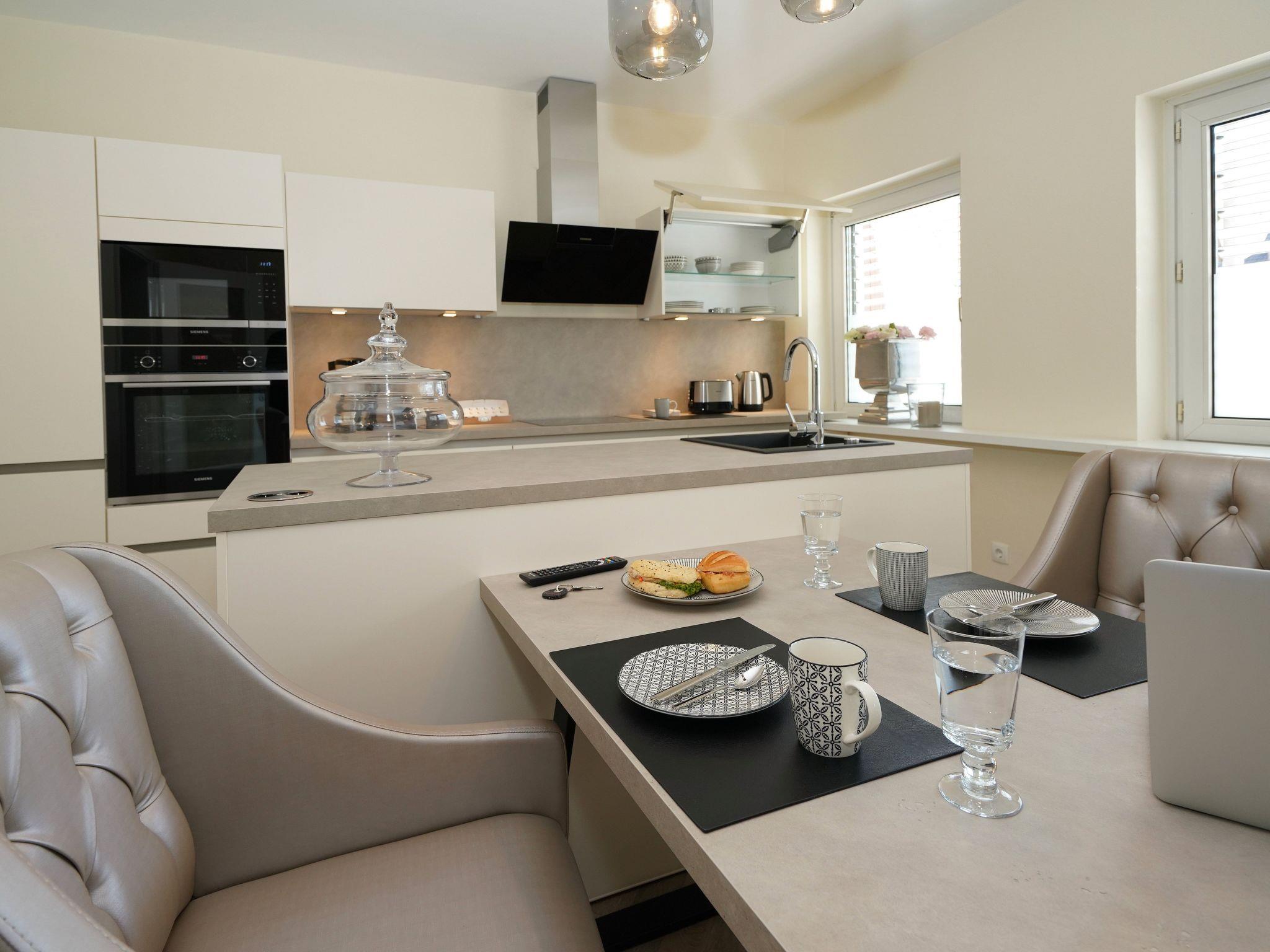 The cosy living/dining room is furnished to a high standard and offers every comfort. All rooms can be darkened, in the bedroom with external blinds and at the front with a modern external venetian blind system (electric).