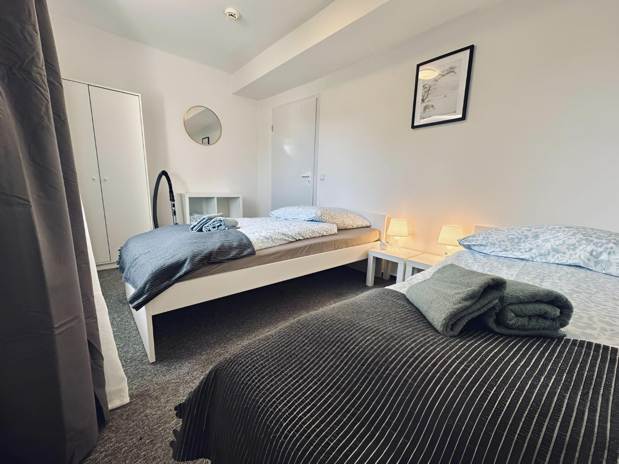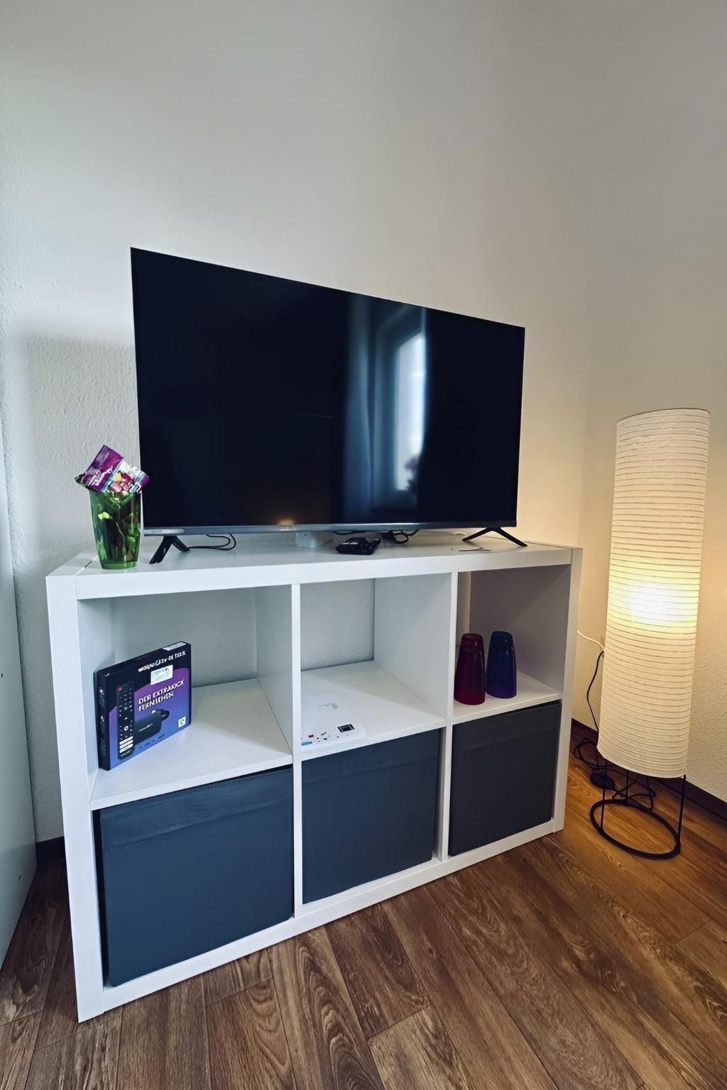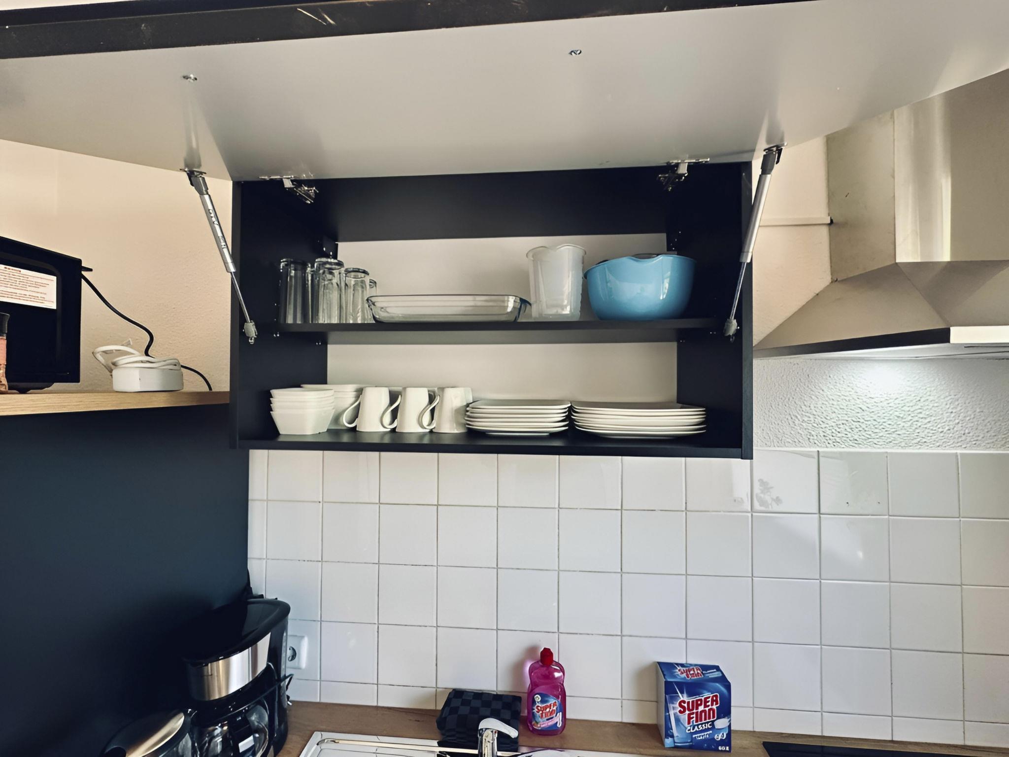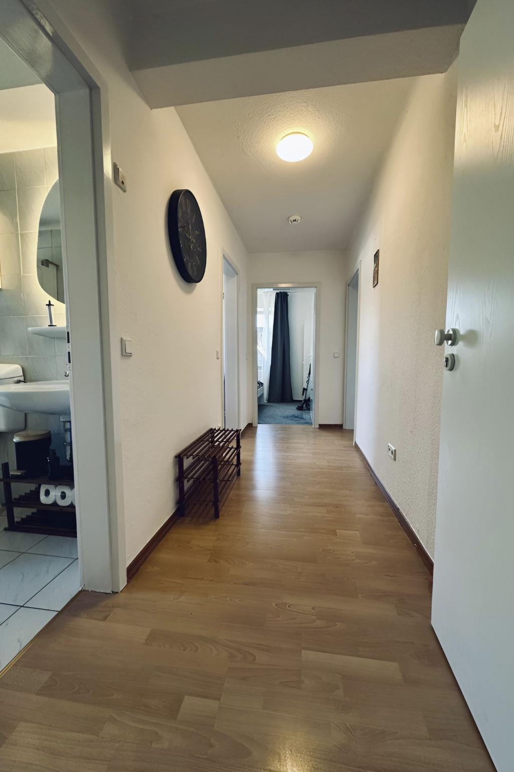 Inside, the flat impresses with its bright and elegant furnishings. It includes a cosy kitchen with dining area that invites you to linger, as well as a modern kitchen equipped with everything your heart desires, including a kettle for relaxed coffee moments. The bathroom is equipped with a practical shower. Furthermore, amenities such as a washing machine and tumble dryer, both for communal use in the building, as well as a fan provide additional comfort during your stay.