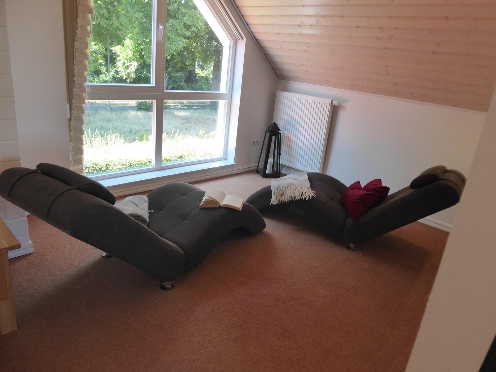 Lassen Sie auf der Galerie in unseren bequemen Relax-Liegen den Tag bei einem guten Buch oder einem Glas Wein ausklingen oder genießen Sie die schöne Aussicht.