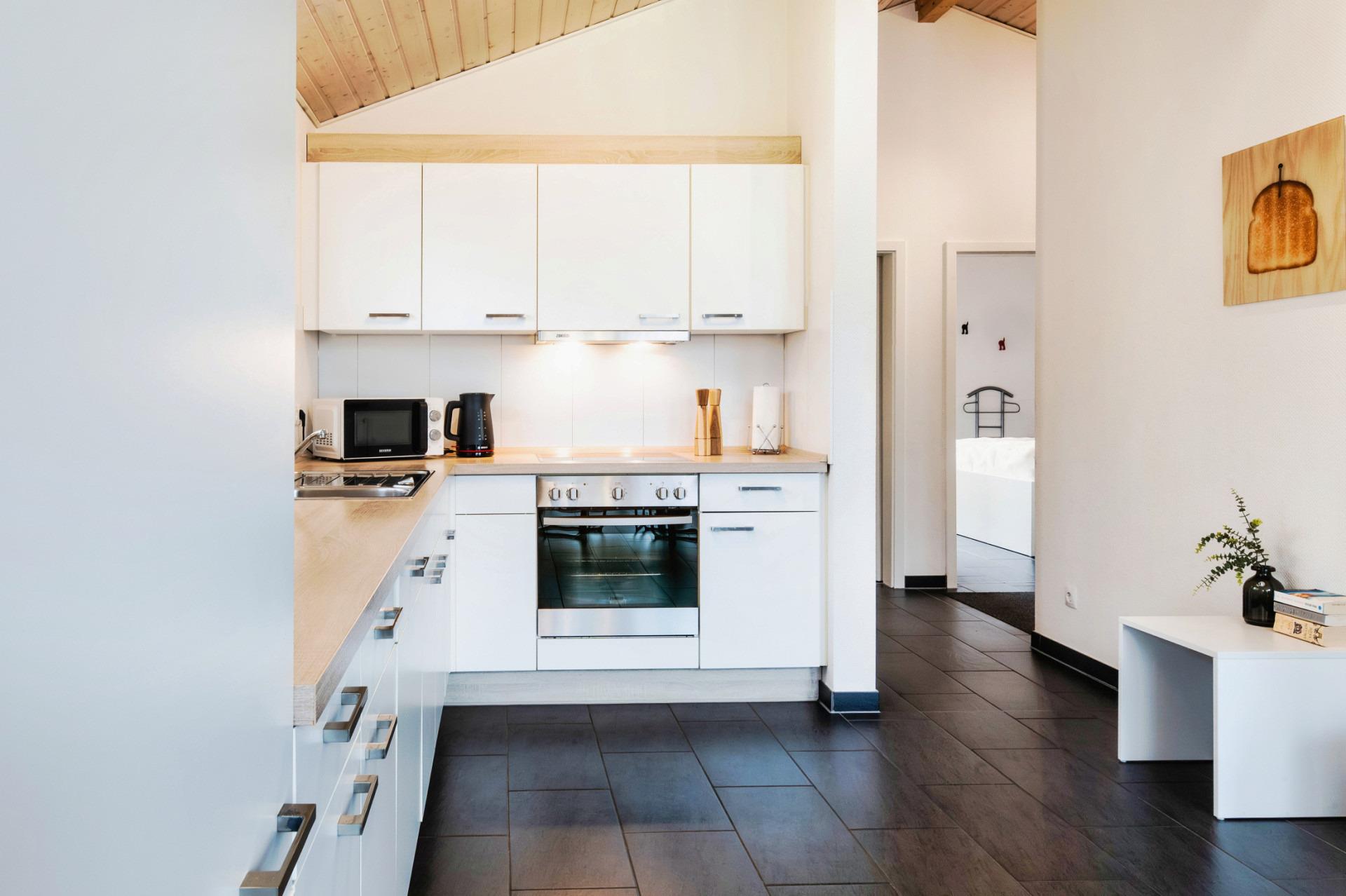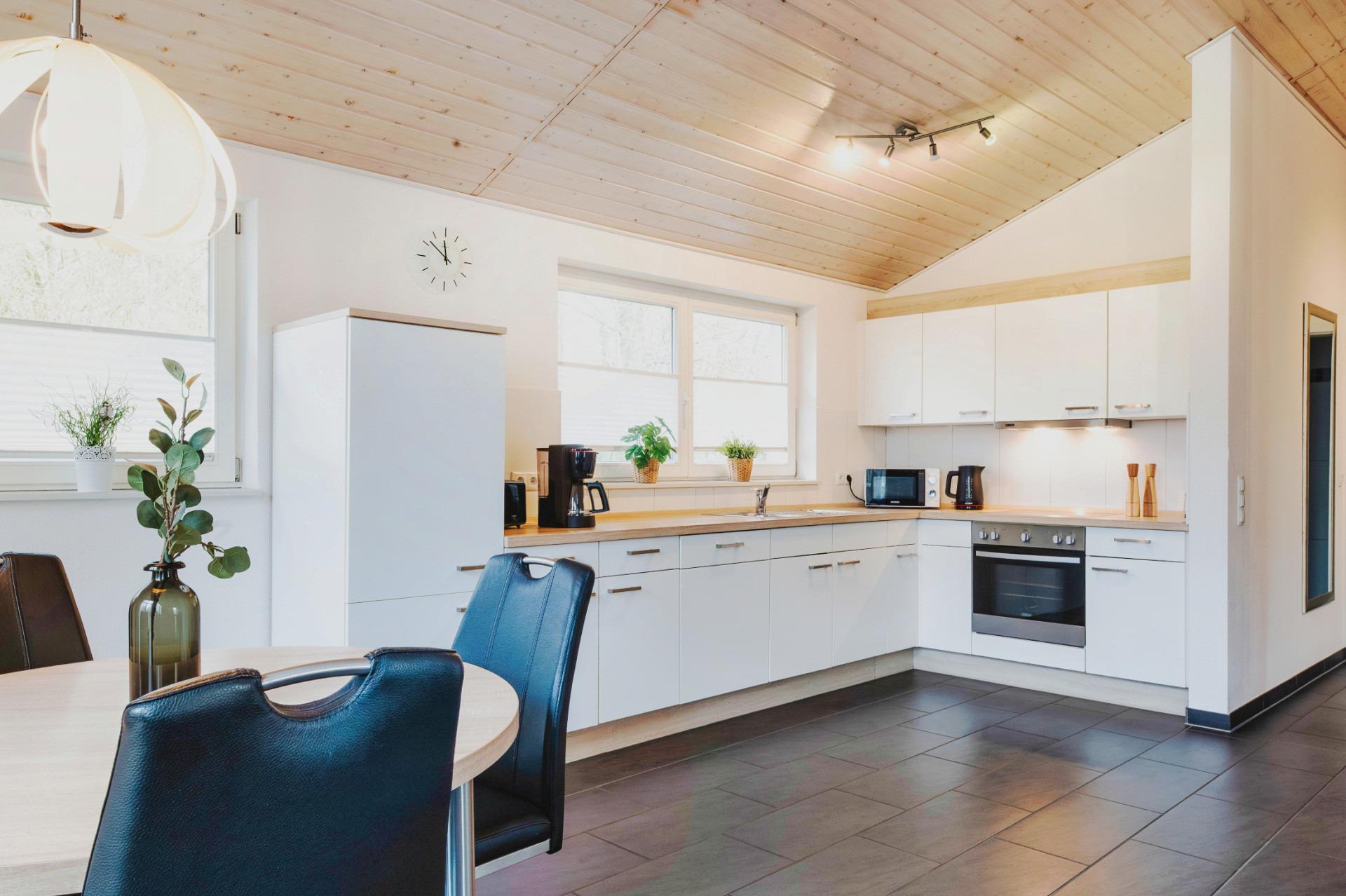 Die moderne, offene Küche ist mit allem ausgestattet, was man für die Zubereitung leckerer Gerichte benötigt.