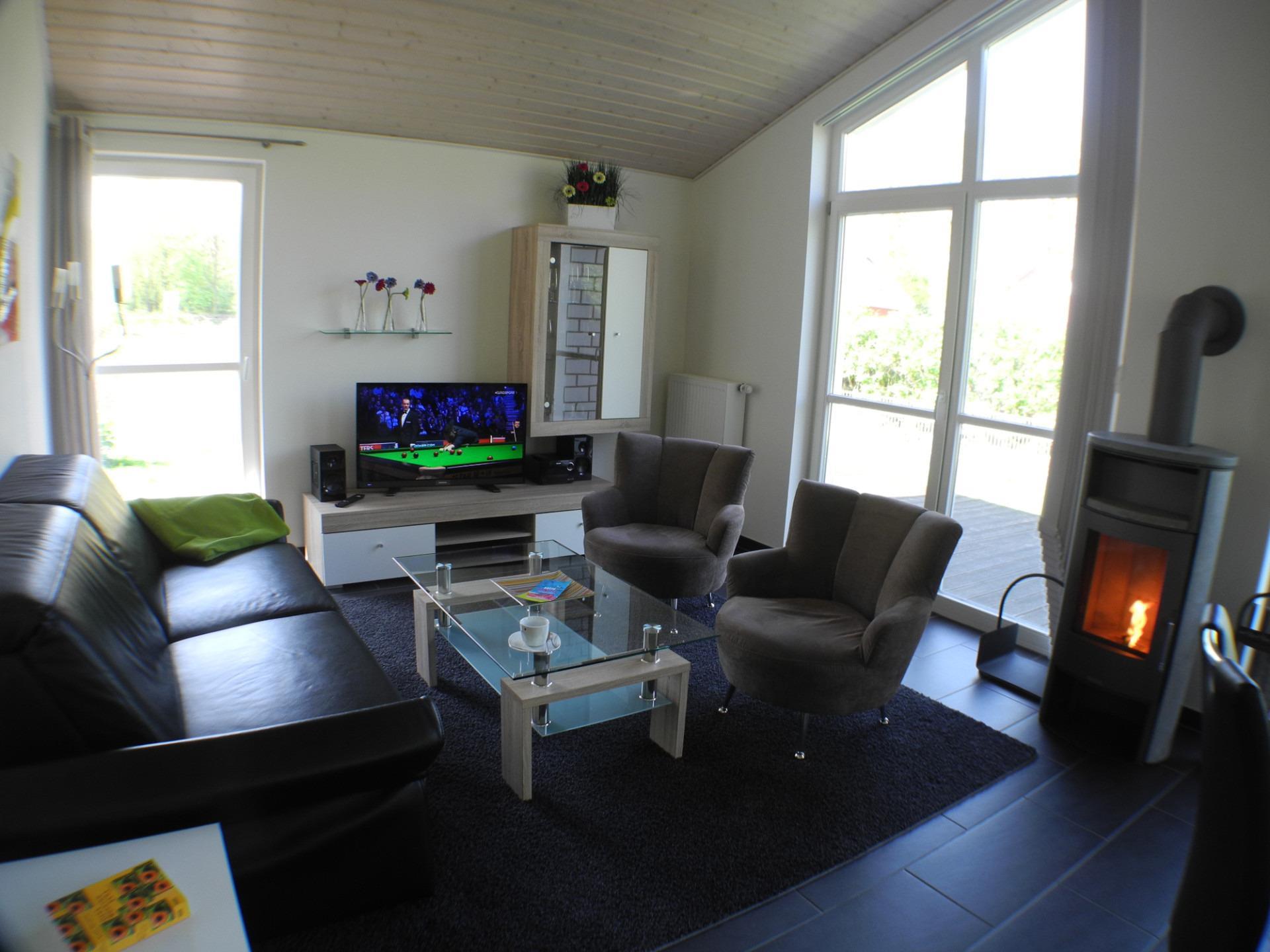 Im Wohnbereich genießen Sie gemütliche Stunden mit einem Glas Rotwein oder eine Tasse Tee vor dem knisternden Feuer des Kamins. Das ist Urlaub pur!