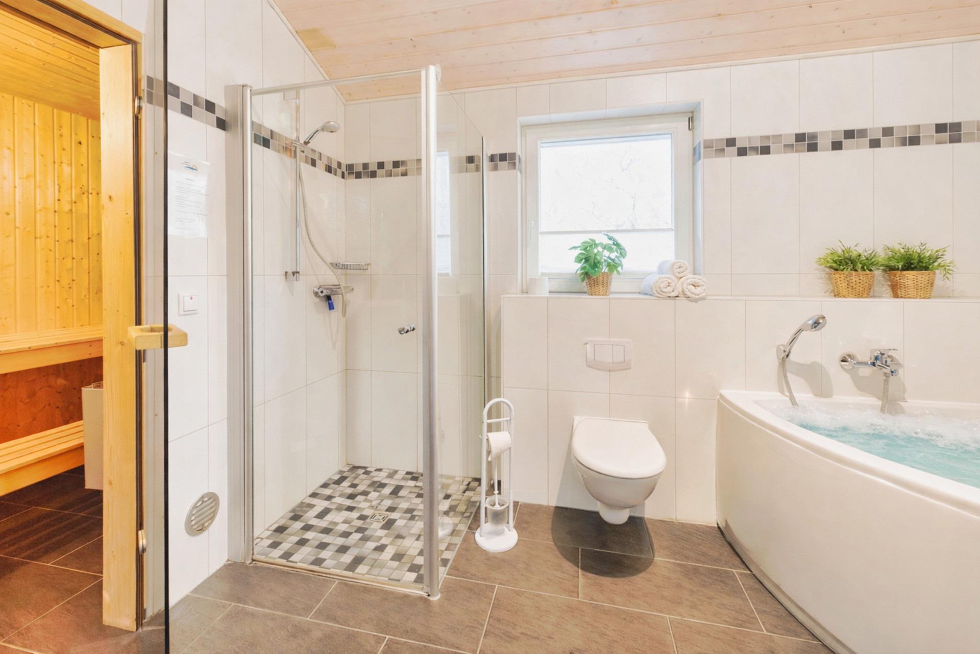 Genießen Sie den Luxus unseres Wellness-Bads und relaxen in der hauseigenen Sauna und im Whirlpool.