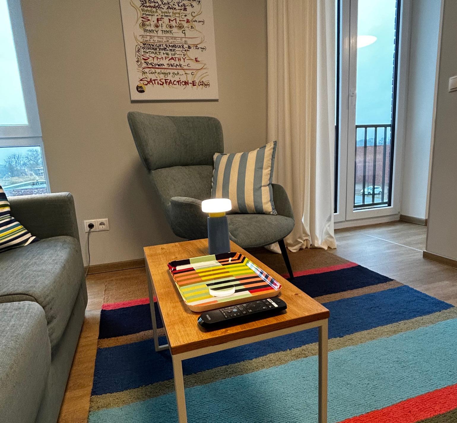Das Apartment ist innovativ und mit Liebe zum Detail eingerichtet. Es liegt im 2. Obergeschoss und bietet bis zu 3 Personen eine angenehme Unterbringung. Ein Aufzug ist vorhanden.