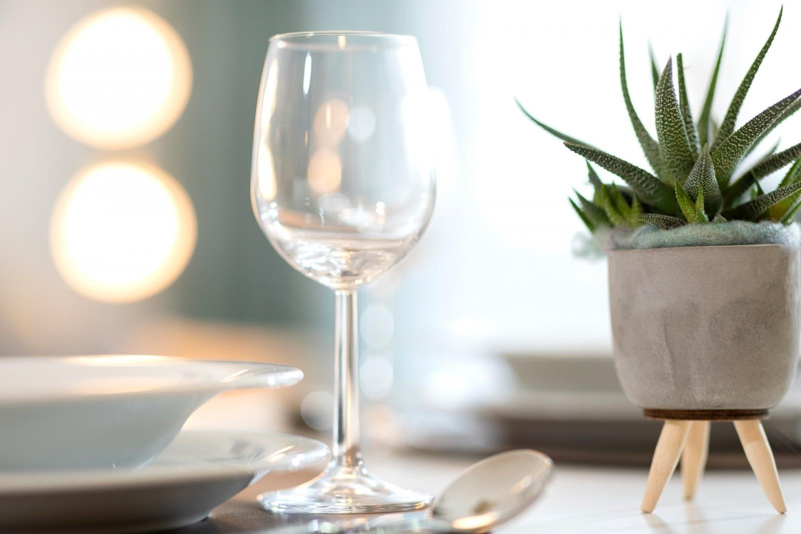 Auf 40 m² verfügt es über eine Pantry-Küche mit Cerankochfeld, Kühlschrank mit Gefrierfach, Spülmaschine, Mikrowelle mit Grill- und Backfunktion, Kaffeemaschine, Mixstab und ausreichend Kochutensilien, um sich vom Frühstück über einen Mittags-Snack bis zum Abendessen selbst versorgen zu können.
