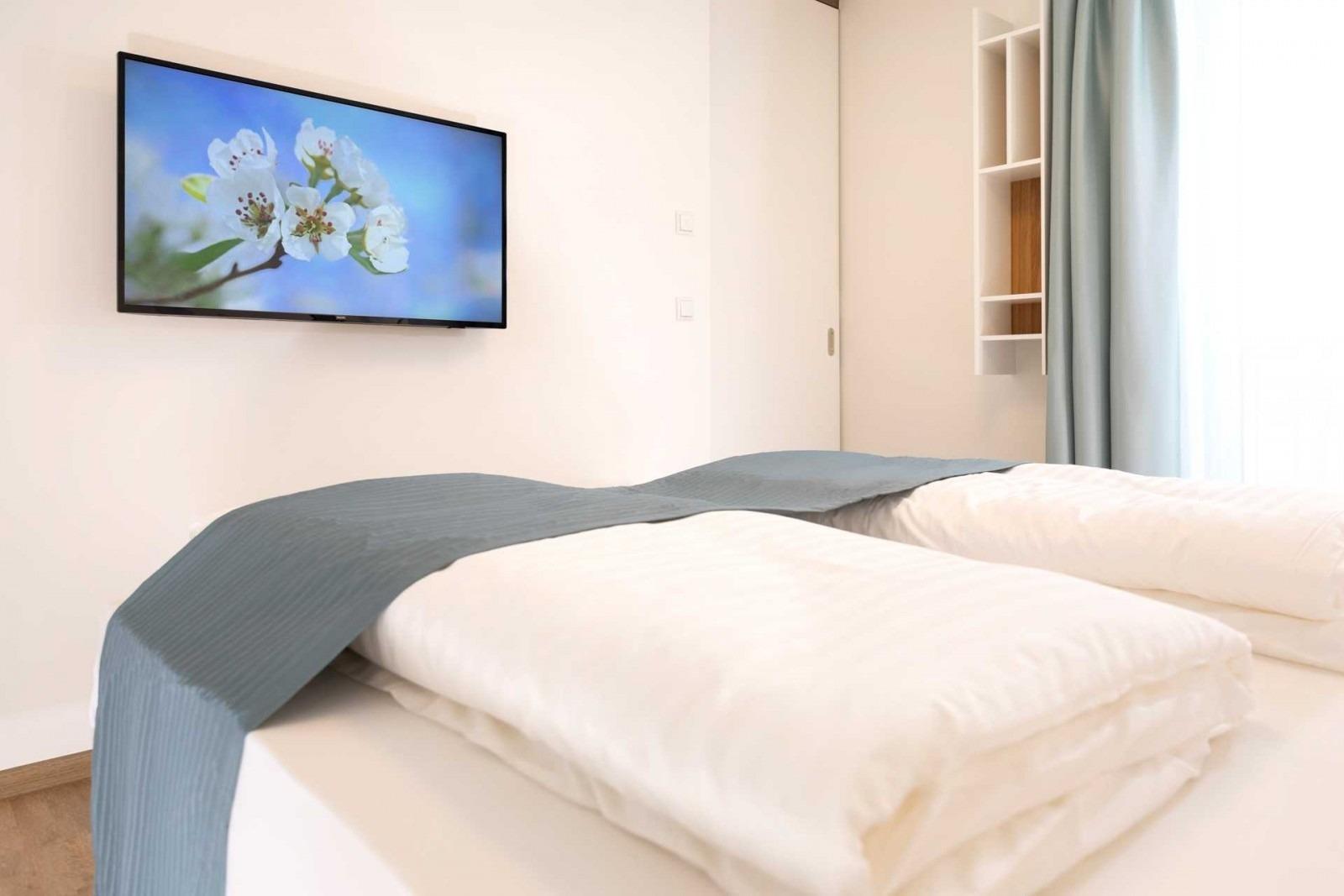 40qm: 1 Schlafzimmer mit Boxspringbett, Schlafsofa, bodengleiche Dusche