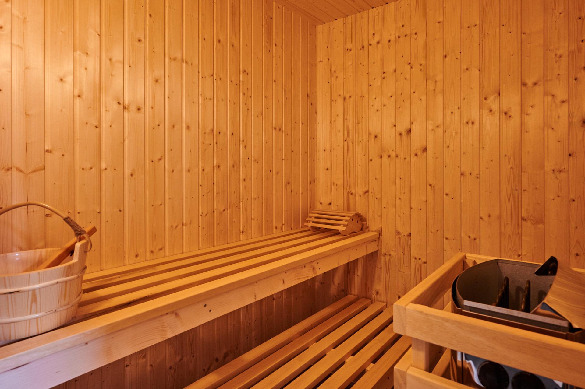 Im Erdgeschoss erwartet Sie Ihr eigenes Wellnessbad mit Sauna, Whirlpool und Dusche. Hier können Sie pure Entspannung erleben und den Stress des Alltags hinter sich lassen.