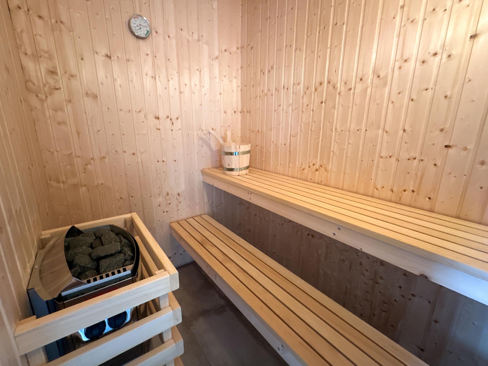 Im Erdgeschoss finden Sie Ihr eigenes Wellnessbad mit Sauna, Whirlpool und bodengleicher Dusche. Hier können Sie pure Entspannung erleben und den Stress des Alltags hinter sich lassen. Die Fußbodenheizung rundet den Wohlfühleffekt ab.