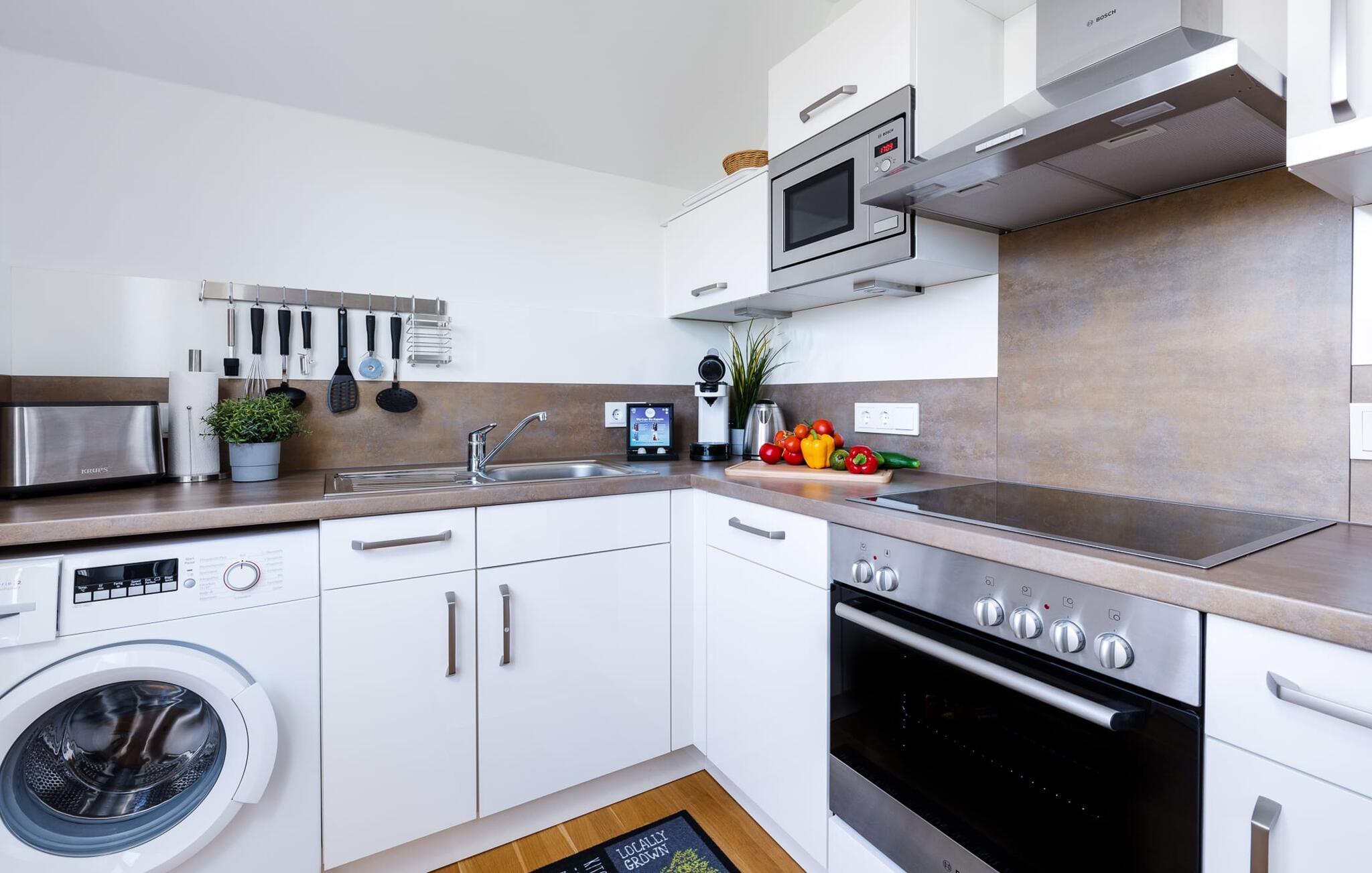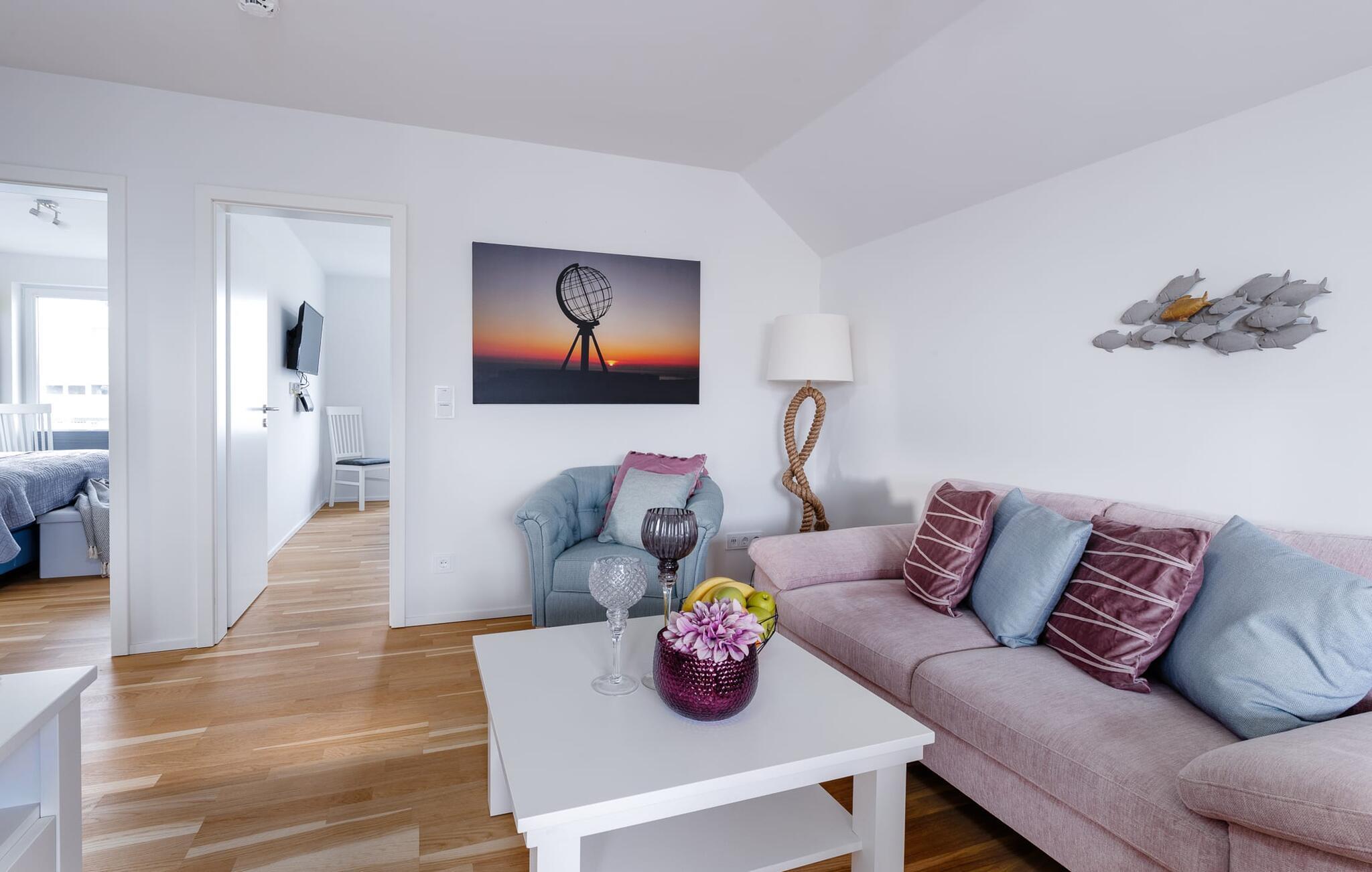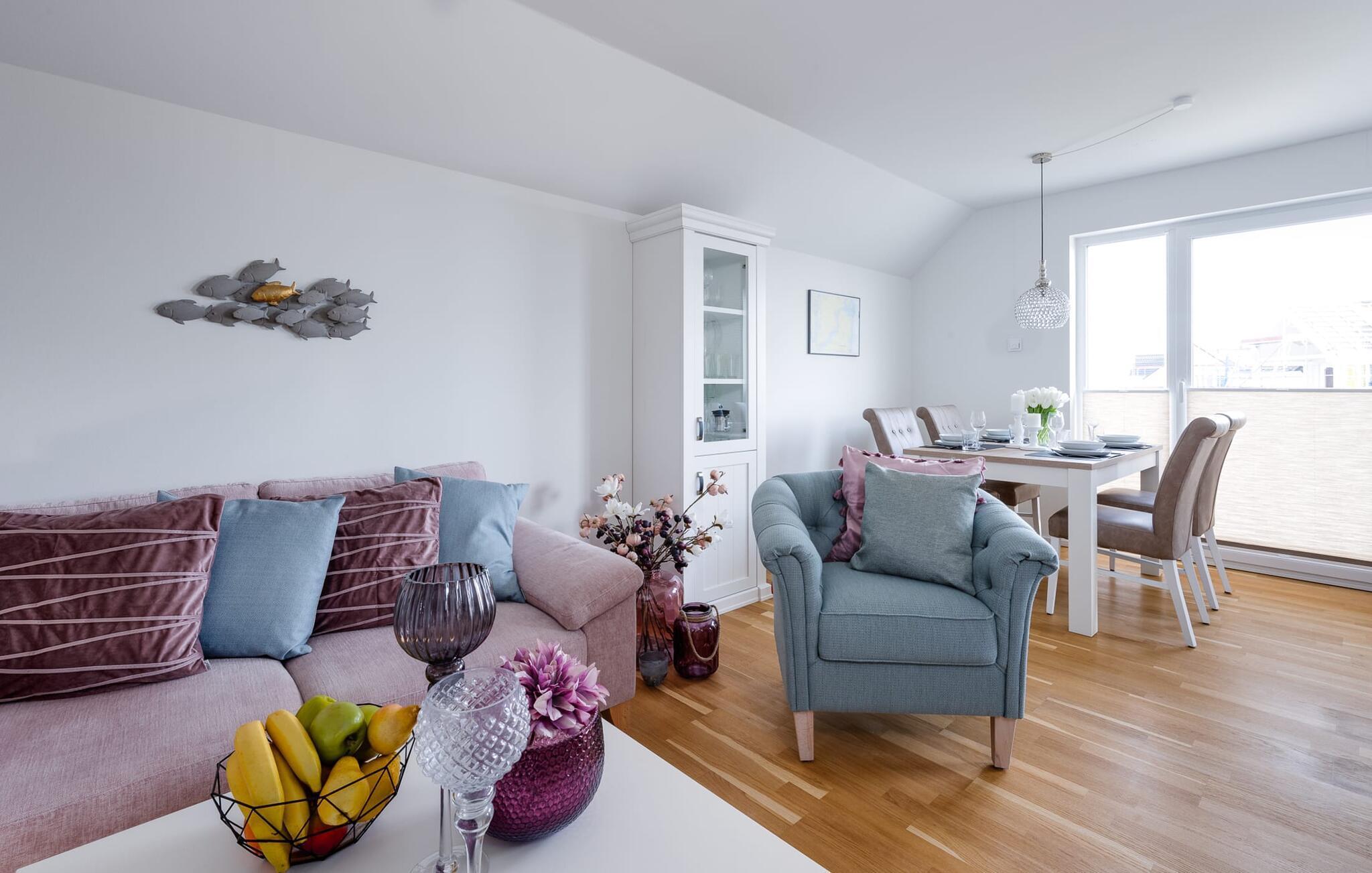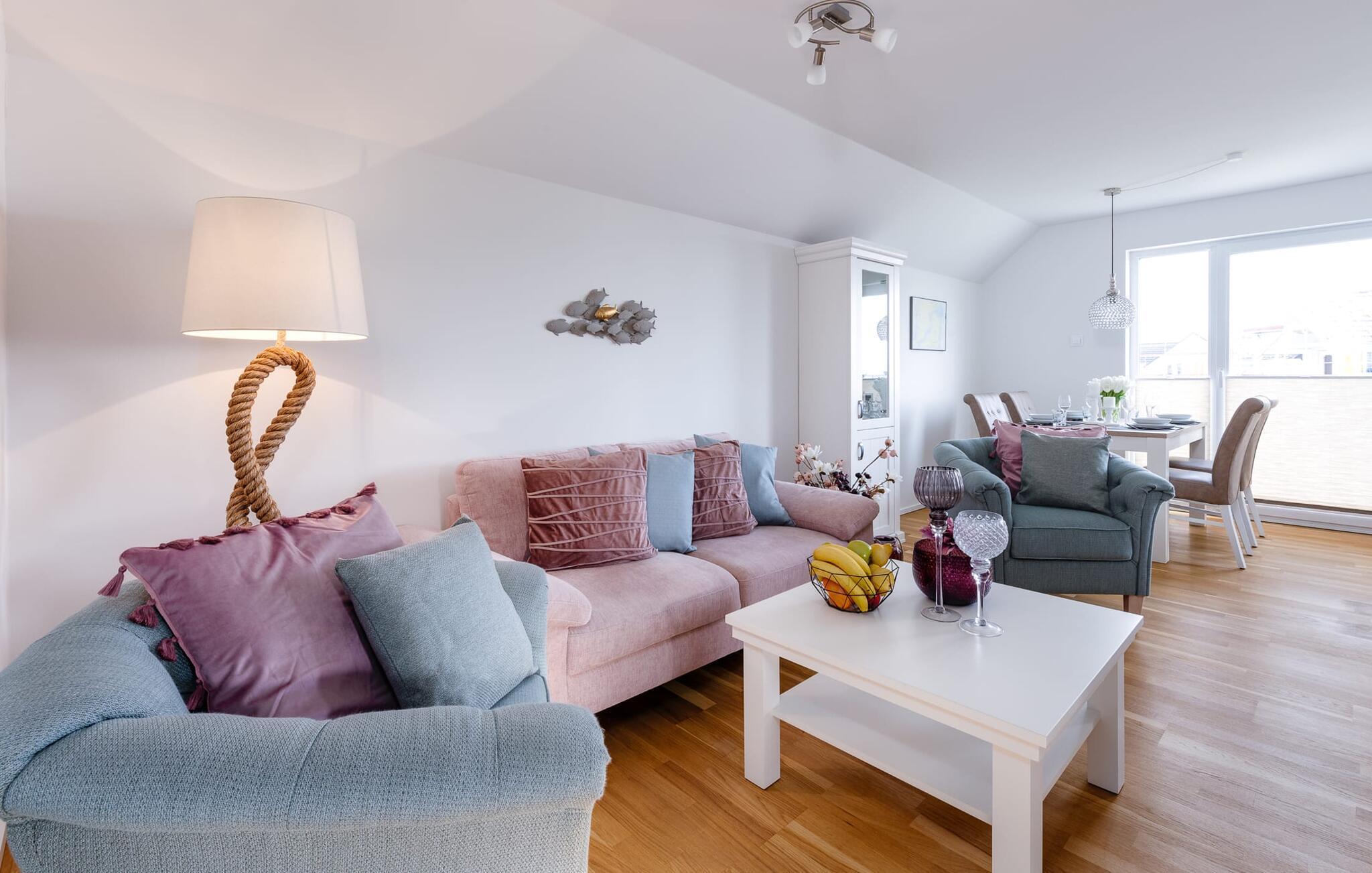 Im Urlaub ist Zeit für kreatives Kochen, die umfangreich ausgestattete Wohnküche lässt hierbei keine Wünsche offen. Direkt an den Essbereich angrenzend liegt die geräumige Sonnenterrasse in Süd-Ost-Lage, auf der zwei Sonnenliegen zur Verfügung stehen. Euch erwartet Sonnengenuss von früh bis spät. Im Wohnbereich steht ein Smart TV mit Telekom Home Entertainment Programm zur Verfügung. Die Wohnung ist mit WLAN ausgestattet, sodass nach Belieben gesurft werden kann.