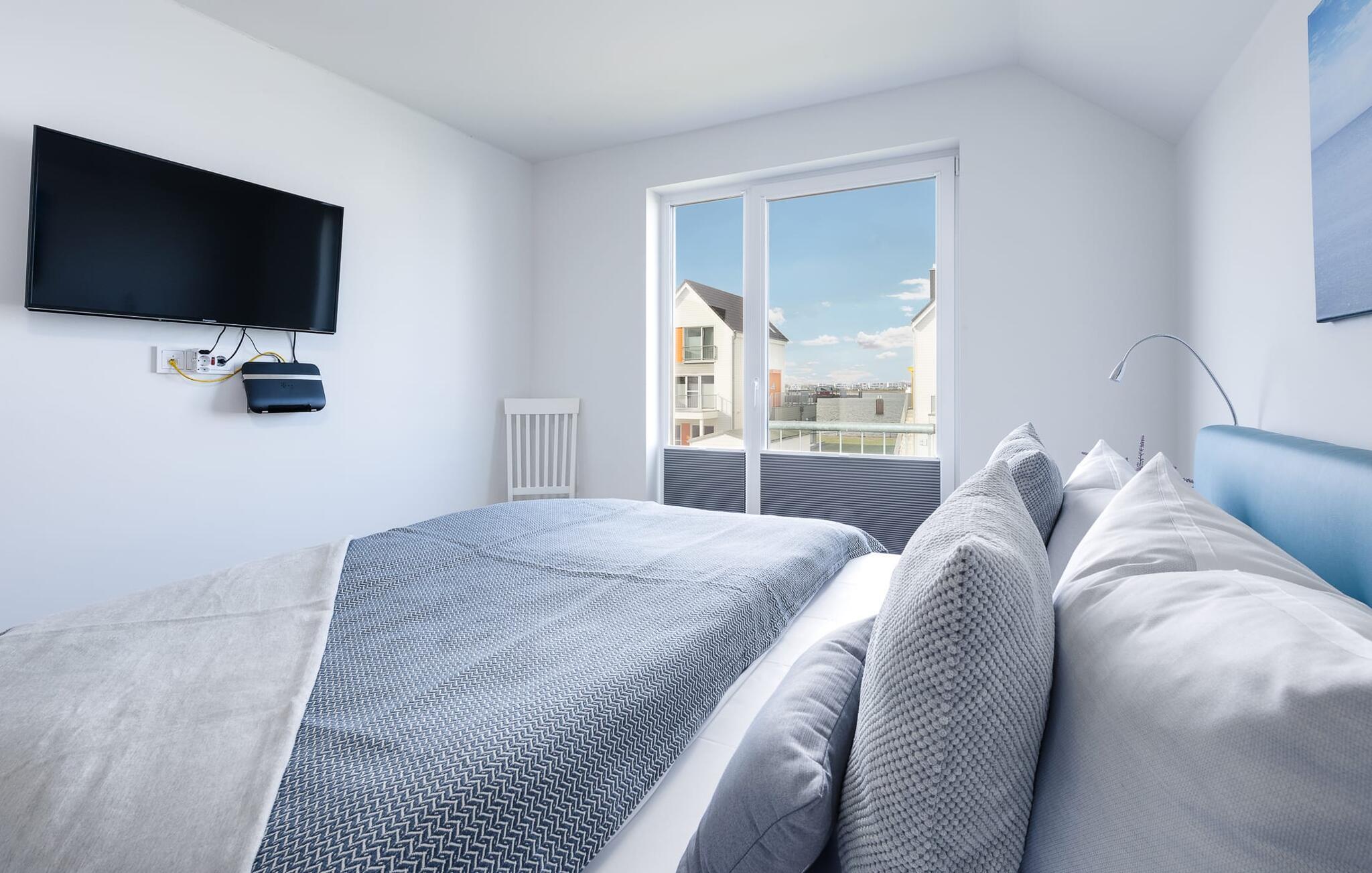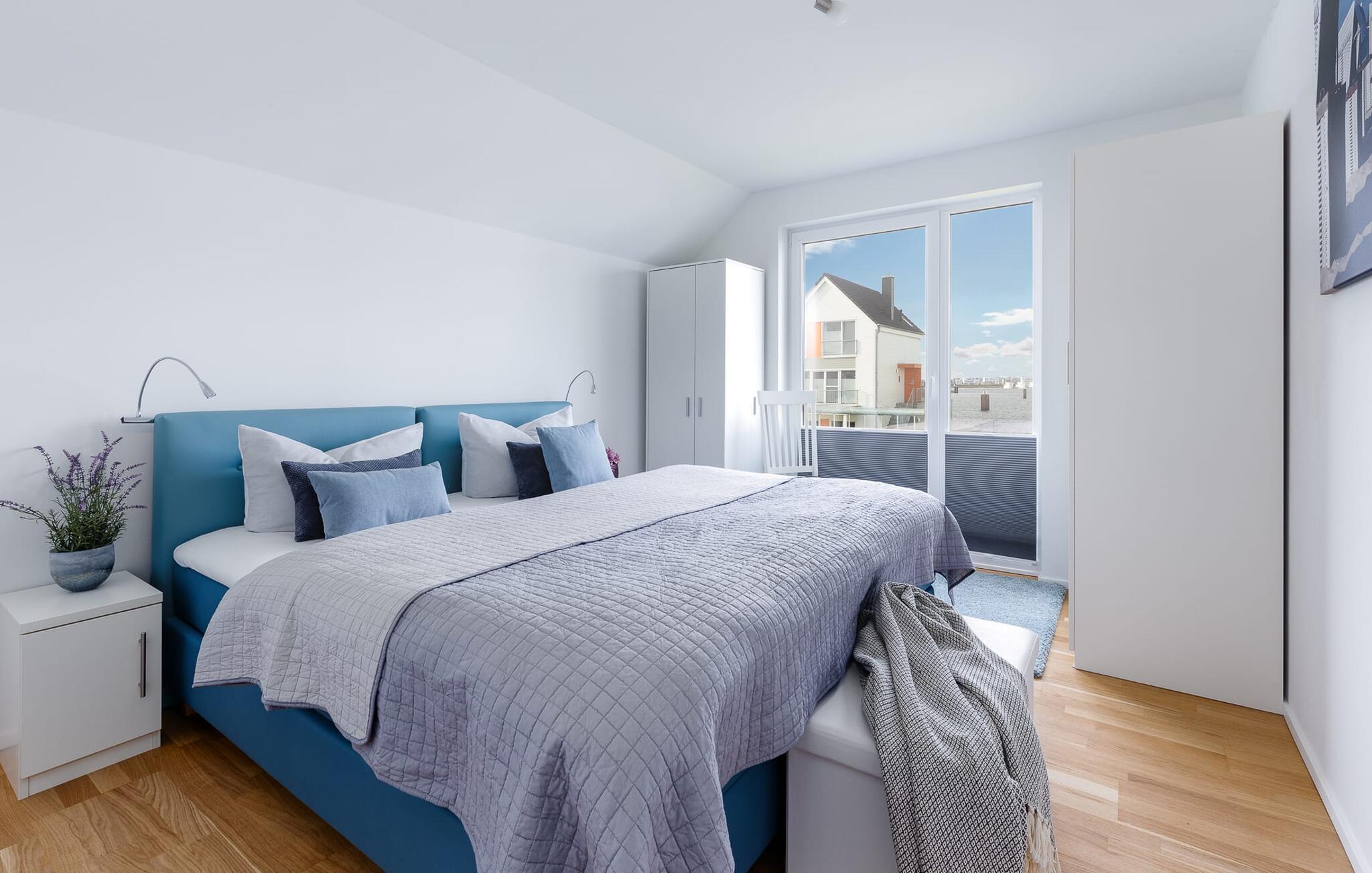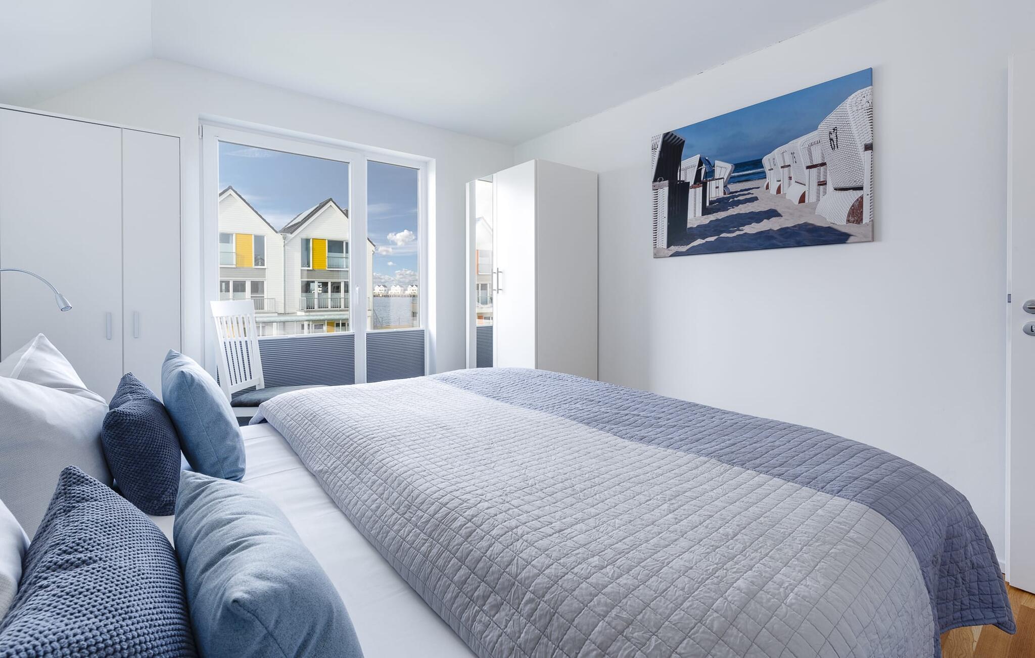 Die beiden Schlafzimmer sind mit hochwertigen Boxspringbetten ausgestattet und bieten einen schönen Hafenblick.