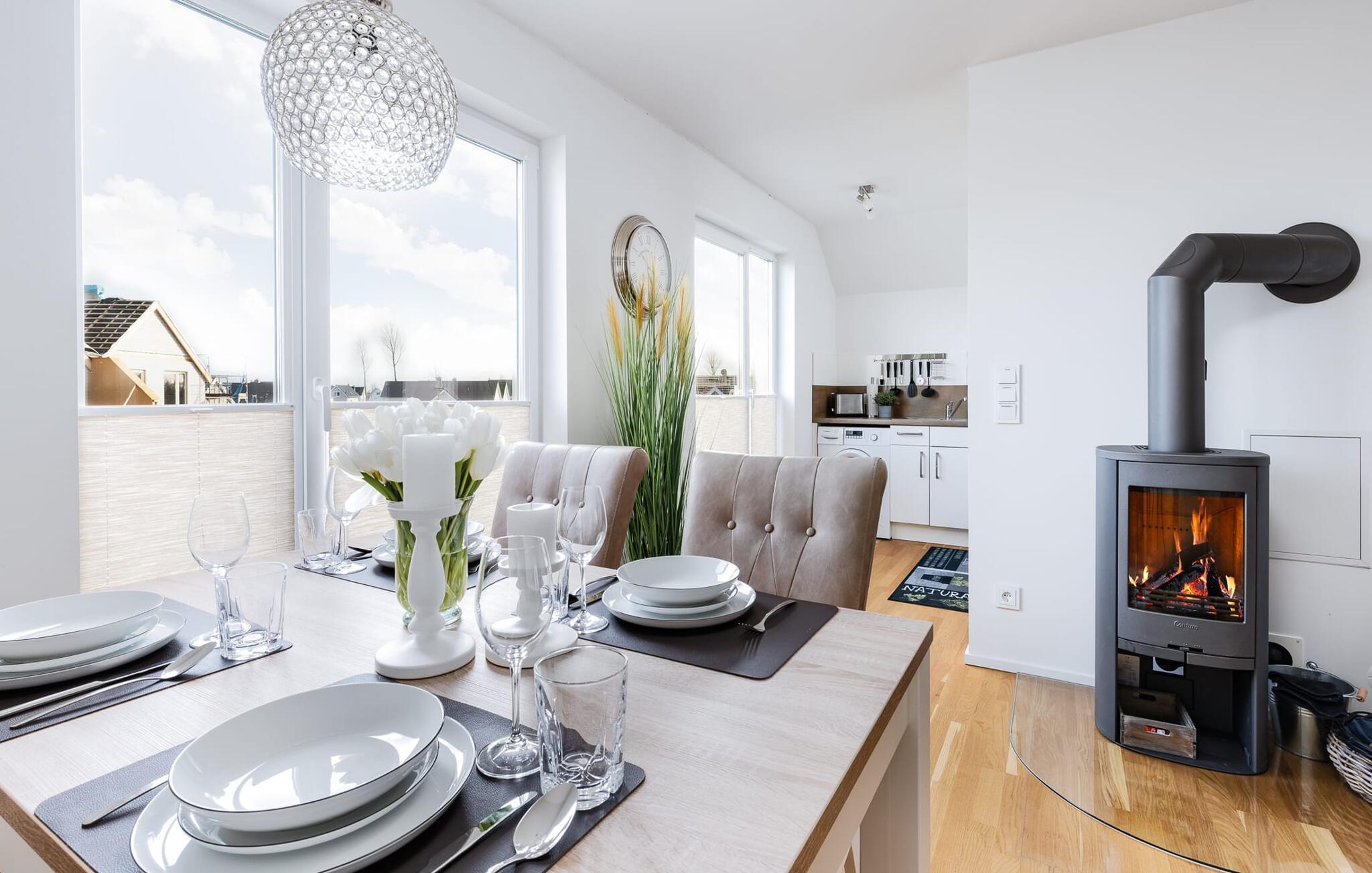 Nur wenige Meter vom Weidefelder Sandstrand und der Hafenpromenade des OstseeResort Olpenitz entfernt, überzeugt diese Ferienwohnung durch seine zentrale Lage und eine gehobene Ausstattung mit privatem Wellnessbereich, Fußbodenheizung und Kaminofen. Zwei Sonnenterrassen (eine hiervon überdacht) versprechen einen traumhaften Blick auf die untergehende Sonne, während die Grünfläche um das Haus zum Entspannen, Spielen und Verweilen einlädt.