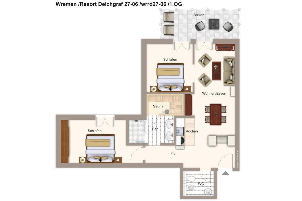 Die hochwertige Ferienwohnung befindet sich in sonniger Süd-Ost-Lage und nur wenige Meter vom Deich entfernt, inmitten des einzigartigen Weltnaturerbes Wattenmeer. Im ersten Obergeschoss des Hauses gelegen, genießt ihr ganzjährig das milde Meeresklima und die erholsame Ruhe des Nordseebads Wremen. In wenigen Gehminuten sind der idyllische kleine Hafen, der Grünstrand und der Leuchtturm Kleiner Preuße – das Wahrzeichen Wremens erreicht. In der nahen Umgebung findet ihr Einkaufsmöglichkeiten und Restaurants. Toll für Familien: Der Spielplatz befindet sich in Sichtweite von eurem Balkon, so dass ihr eure Kinder beim Spielen im Blick habt.